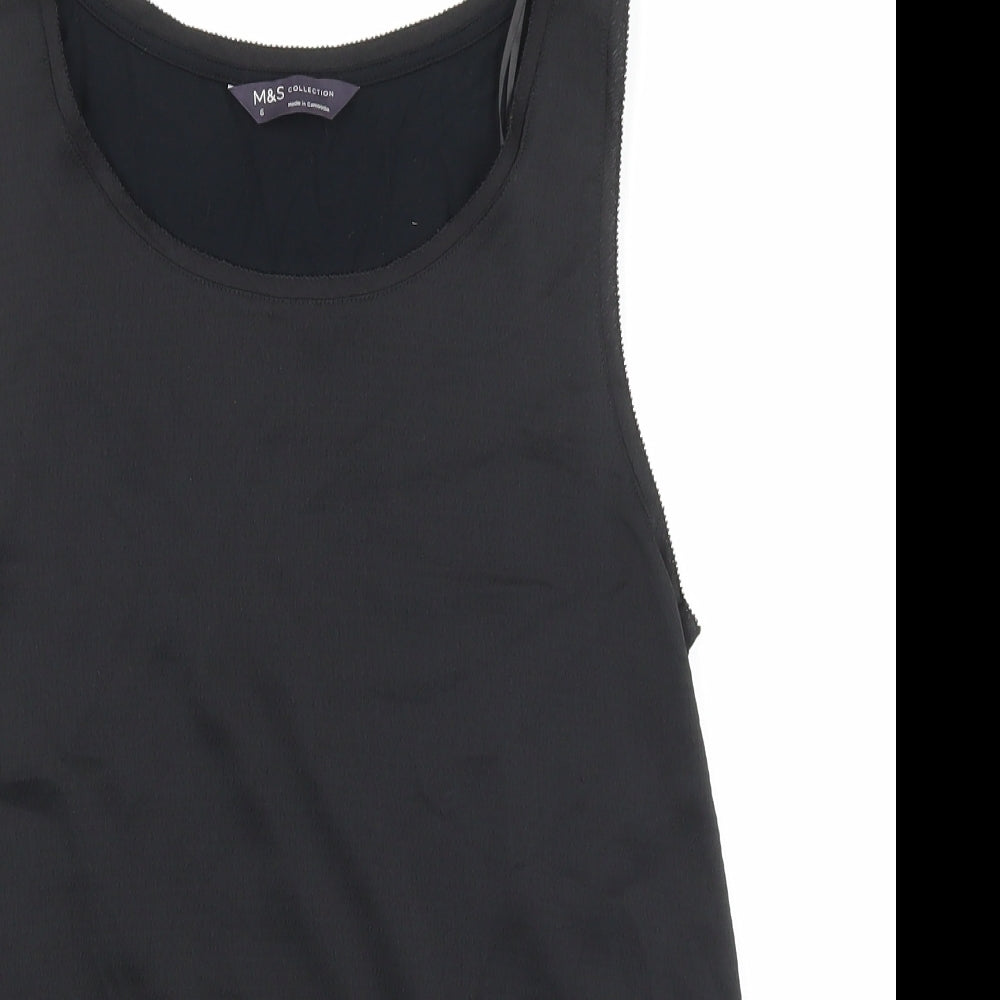 Womens Black Polyester Basic Tank Size 6 Boat Neck
