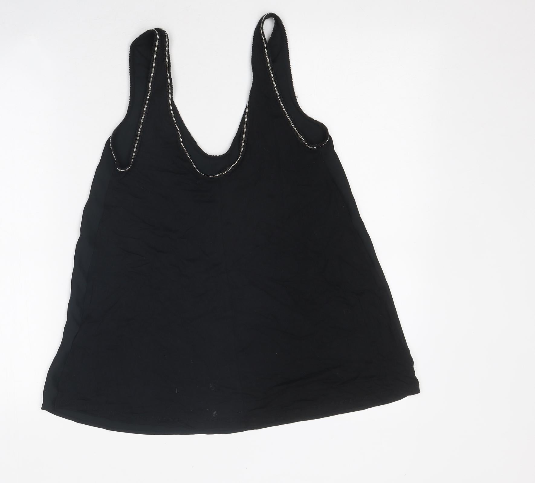 Womens Black Polyester Jersey Tank Size 6 Round Neck