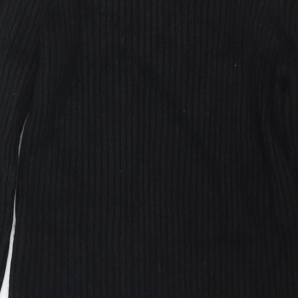 Womens Black Polyester Jumper Dress Size M Round Neck Pullover - Side Slit(s)