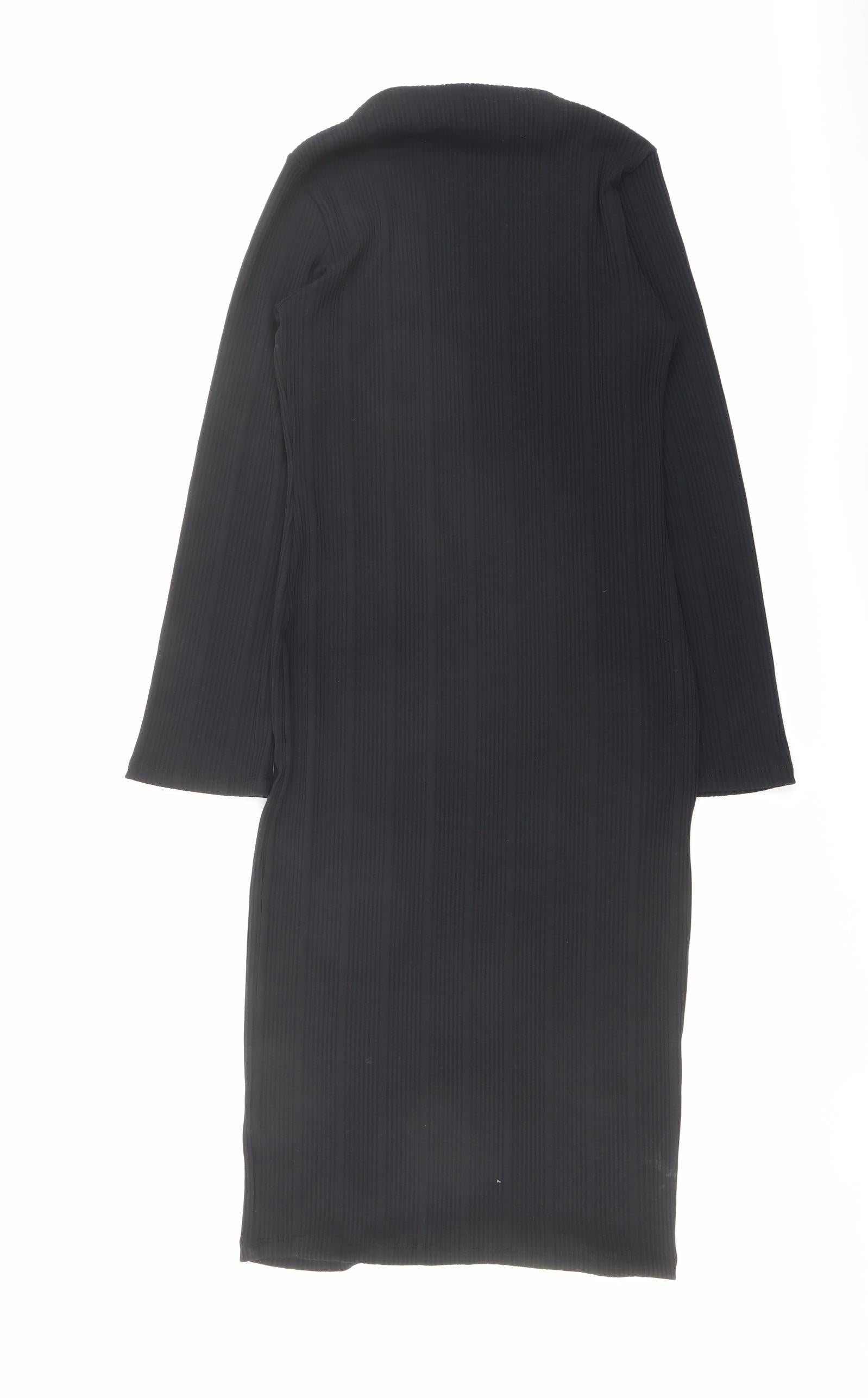 Womens Black Polyester Shift Size 12 Round Neck Pullover