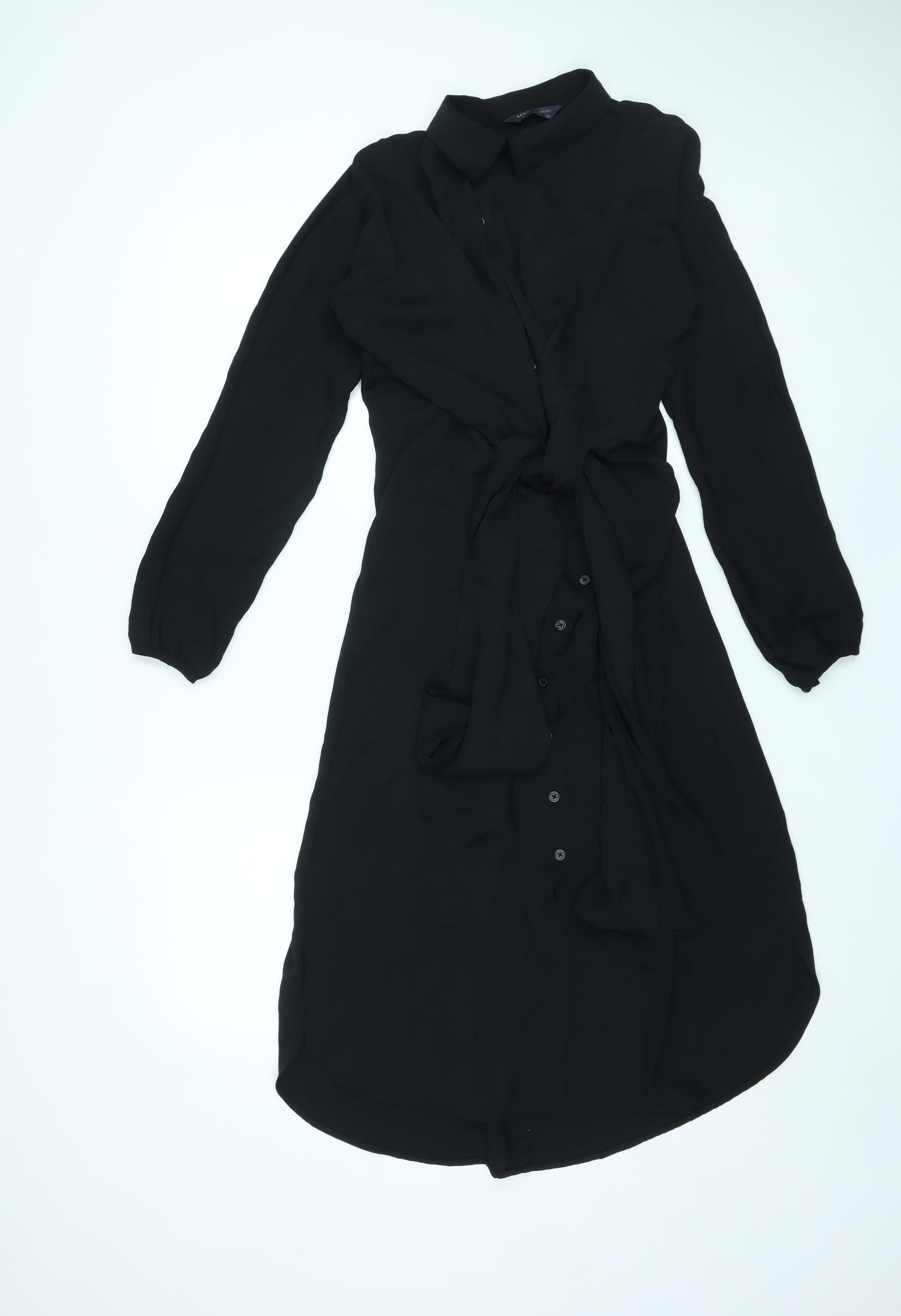 Marks and Spencer Womens Black Geometric Polyester Shirt Dress Size 10 V-Neck Tie