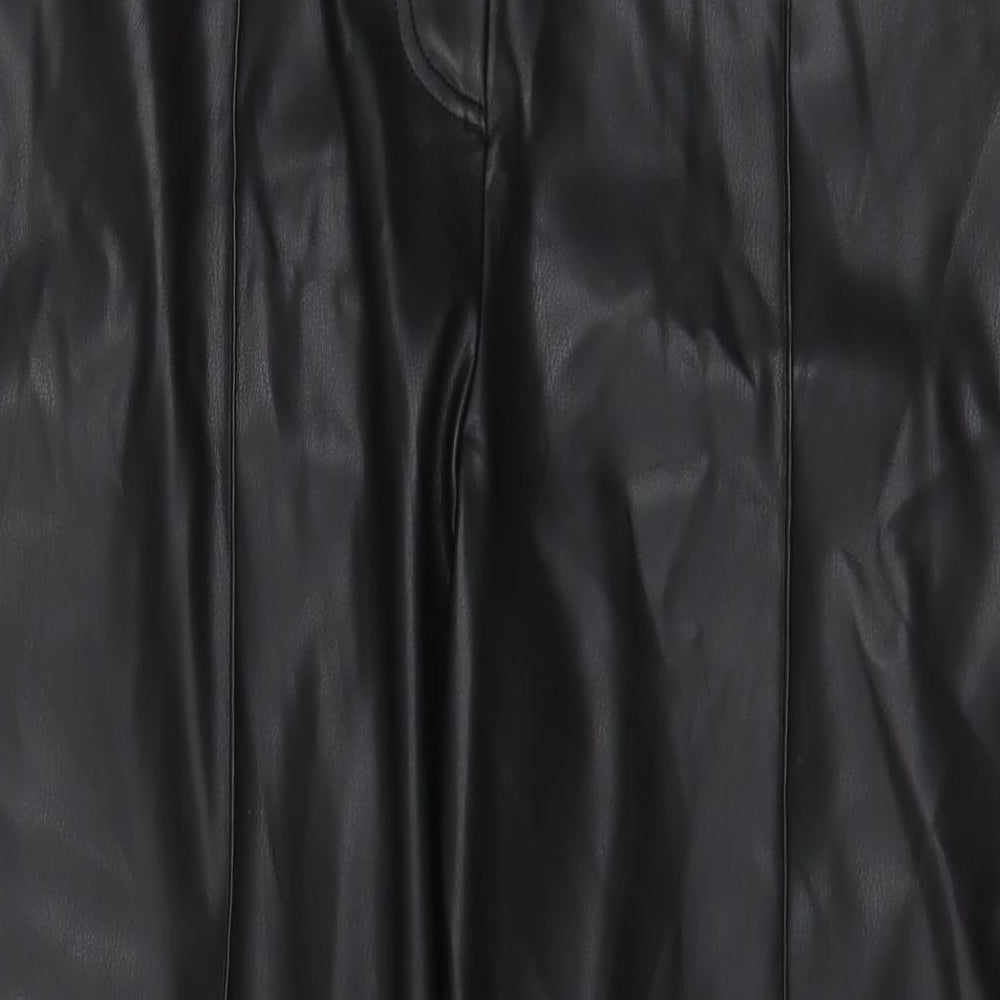 Womens Black Polyester Trousers Size 18 L26 in Regular Hook & Eye - Leather Look