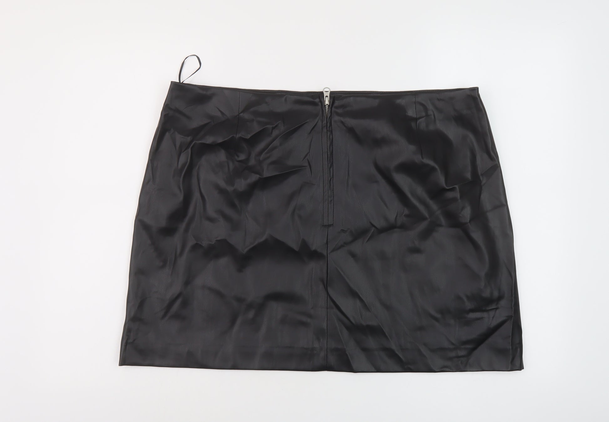 Womens Black Polyurethane Mini Skirt Size 20 Zip