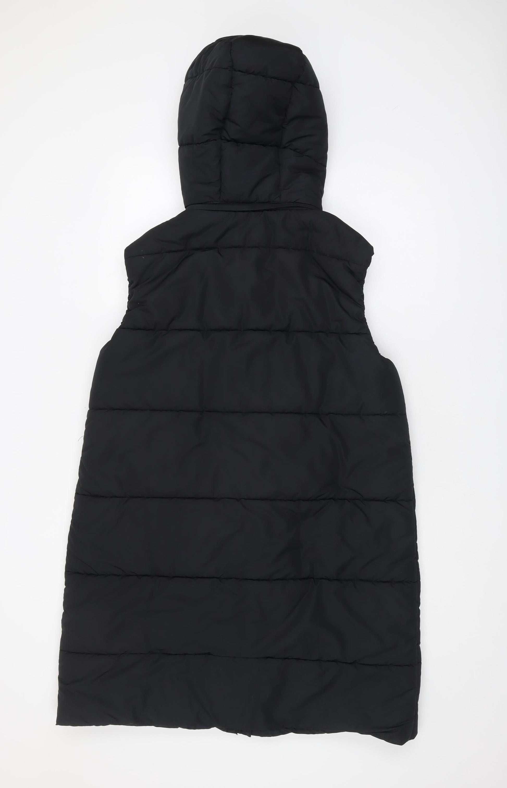 Stay warm and stylish with this women's puffer waistcoat from Marks and Spencer. Crafted in a sleek black colour, this sleeveless garment is designed for winter wear, offering an ideal combination of functionality and fashion. The padded construction provides extra warmth during colder months, enhanced by a hood for added comfort and protection against the elements. Made from recycled polyester, it aligns with eco-friendly fashion choices without compromising on quality or aesthetics. The waistcoat features a convenient snap closure, making it easy to put on and take off, while maintaining a neat and refined look. Tailored for a regular fit, it is perfect for casual occasions and suitable for various body types. The waistcoat holds no pattern, ensuring it pairs effortlessly with other pieces in your wardrobe. From shopping excursions to leisurely walks in the park, this versatile piece offers both practicality and elegance. Meticulously crafted, it is machine washable for easy care and maintenance. With its excellent condition and stylish features, this Marks and Spencer waistcoat is a must-have addition to your winter collection. Experience unparalleled comfort and chic style available for an affordable price of just £25.00. Don't miss out on this fashionable winter essential—snag your piece today and elevate your seasonal wardrobe.