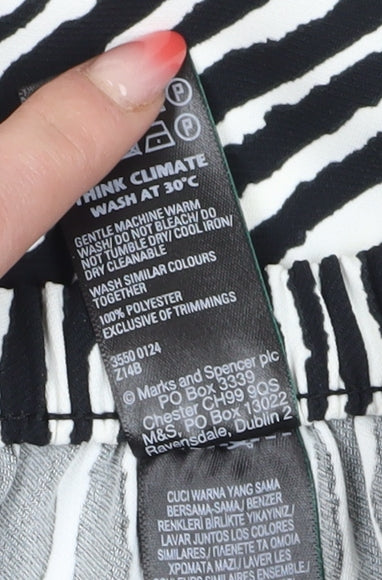 Elevate your casual summer wardrobe with these chic Marks and Spencer Women's Relaxed Trousers. Designed with a striking animal print in a classic black hue, these trousers are a stylish choice for any casual occasion. The relaxed fit provides comfort while maintaining a sophisticated look, making them perfect for everyday wear.Tailored for the modern woman, these trousers boast a mid-rise waist with an elastic waistband, ensuring a comfortable and flattering fit. The drawstring closure adds a touch of convenience, allowing you to adjust the waist to your liking. Crafted entirely from high-quality polyester, these trousers promise durability and easy maintenance, being machine washable.Their straight leg style offers a timeless silhouette, making them versatile enough to pair with a variety of tops and footwear. Whether you're heading out for a summer stroll or meeting friends for brunch, these trousers are guaranteed to become a staple in your wardrobe. Embrace the bold animal theme and step out in style with Marks and Spencer.