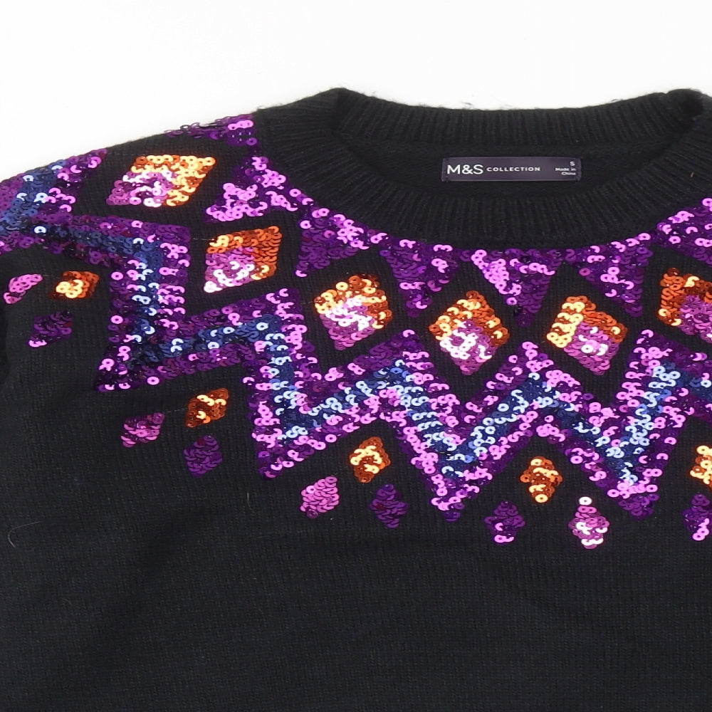 Womens Black Round Neck Acrylic Pullover Jumper Size S