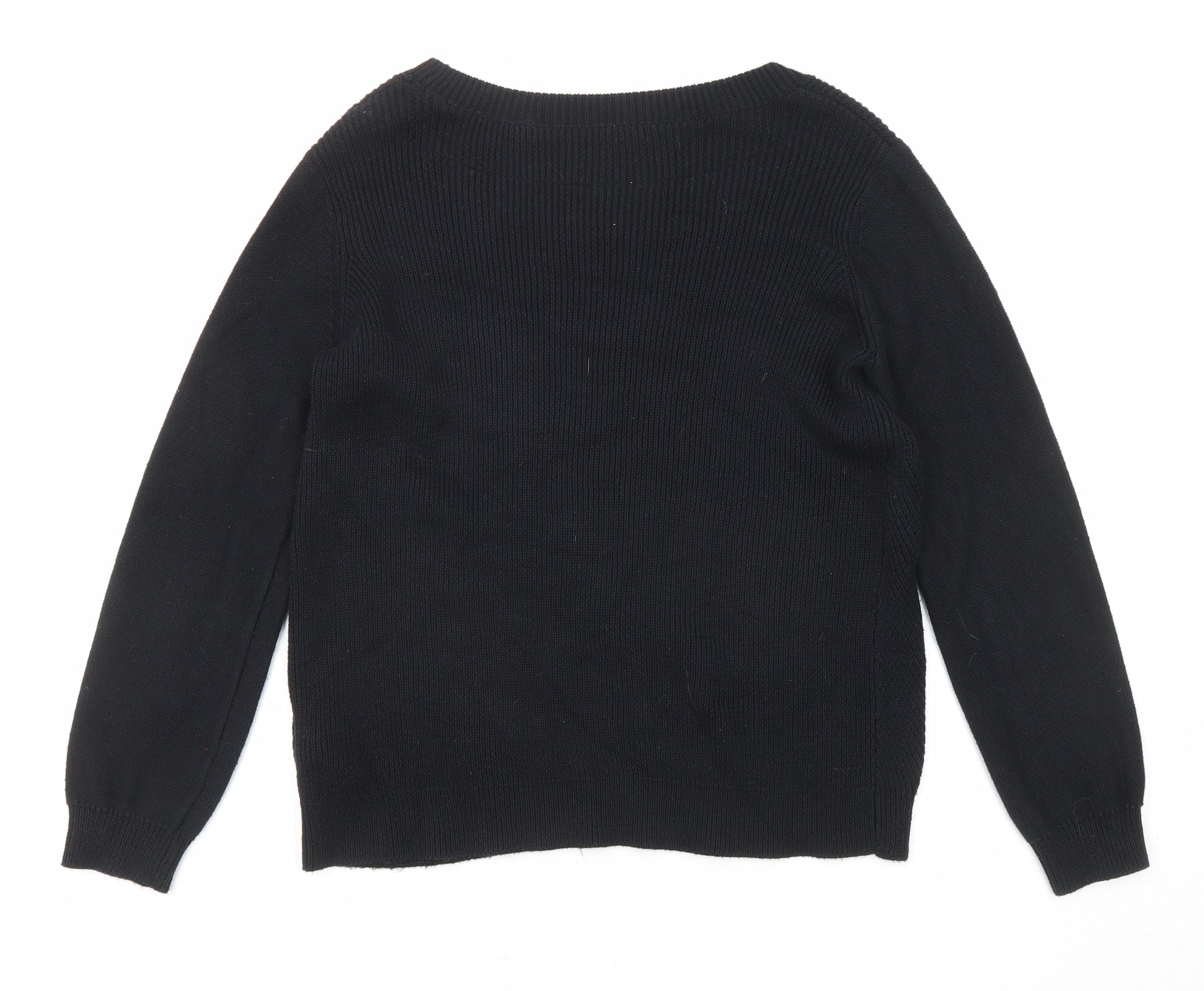 Womens Black Round Neck Cotton Pullover Jumper Size 12