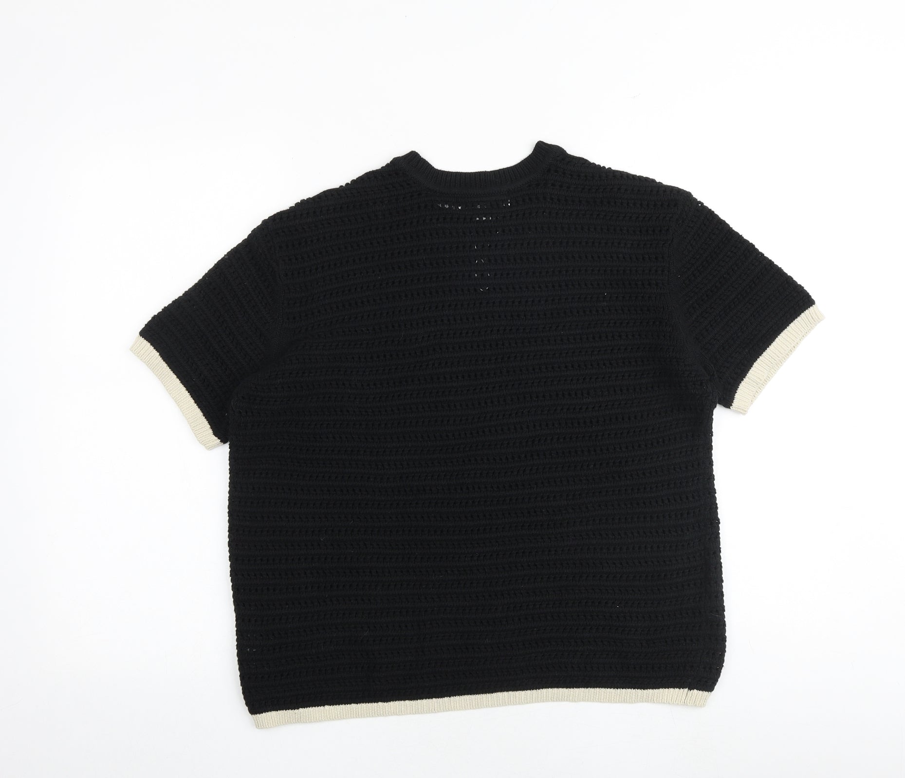 Womens Black Round Neck Cotton Pullover Jumper Size M