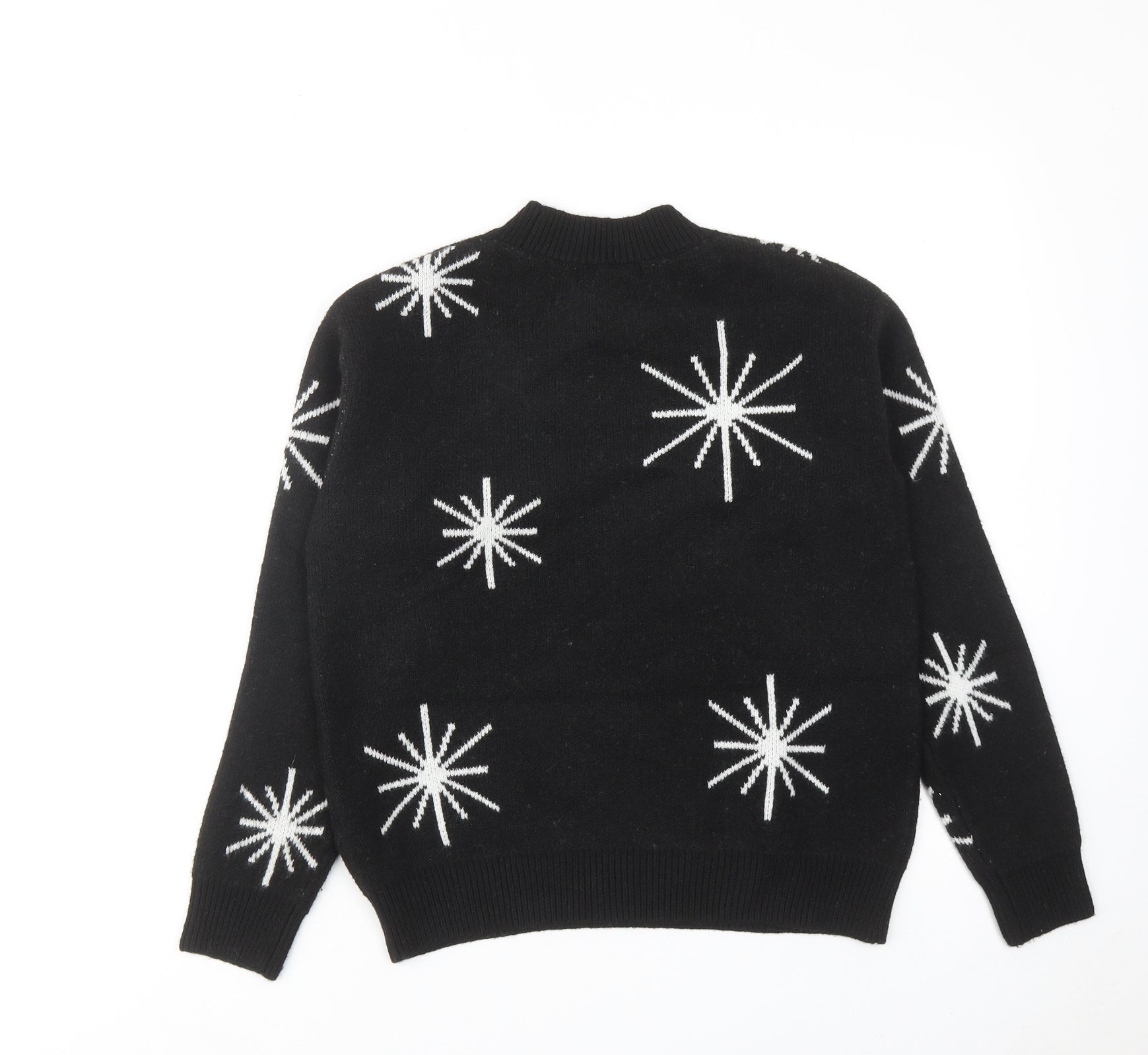 Womens Black Round Neck Geometric Polyester Pullover Jumper Size S