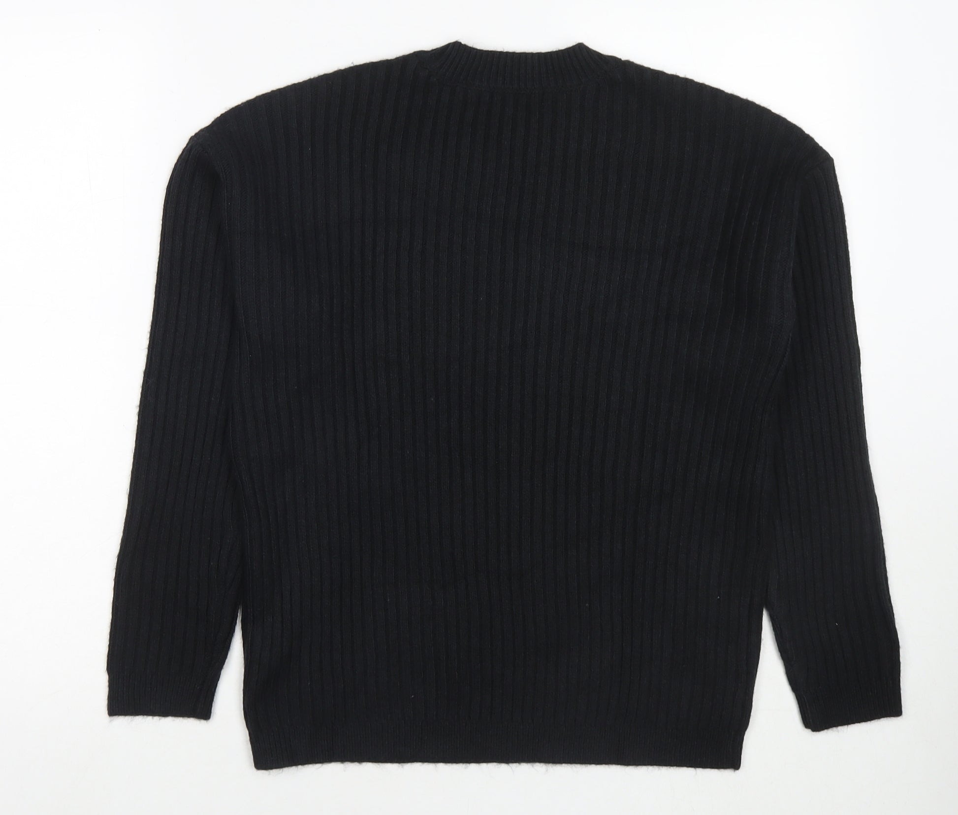 Womens Black Round Neck Polyester Pullover Jumper Size S