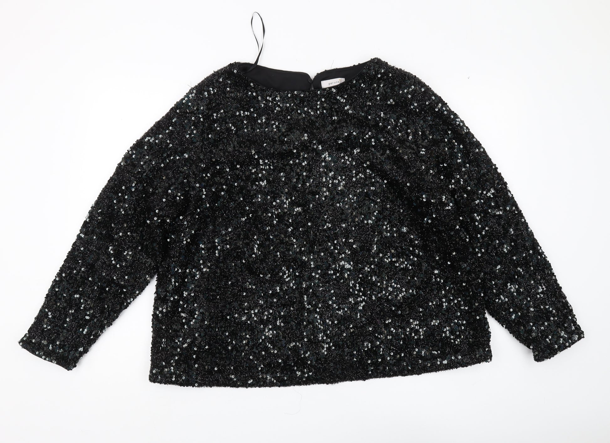 Bonmarché Women’s Black Sequin Lace Mesh Cropped Blouse Size 20