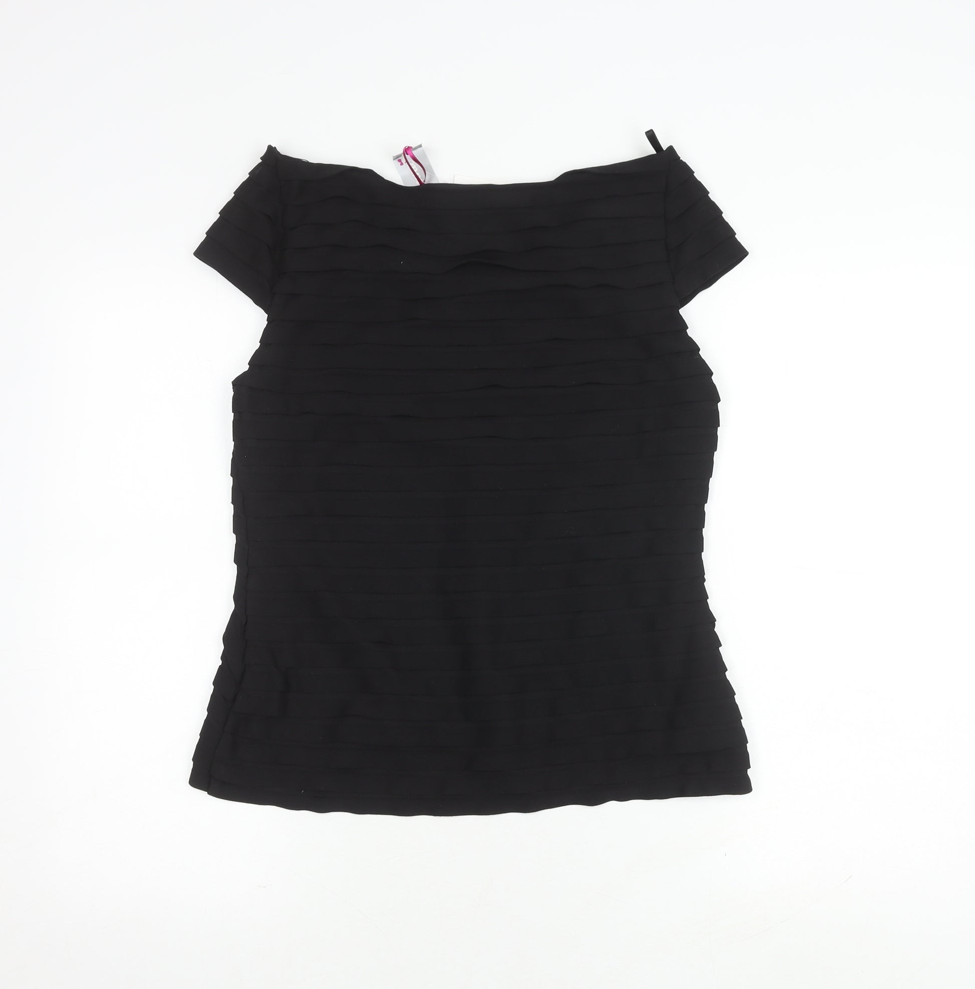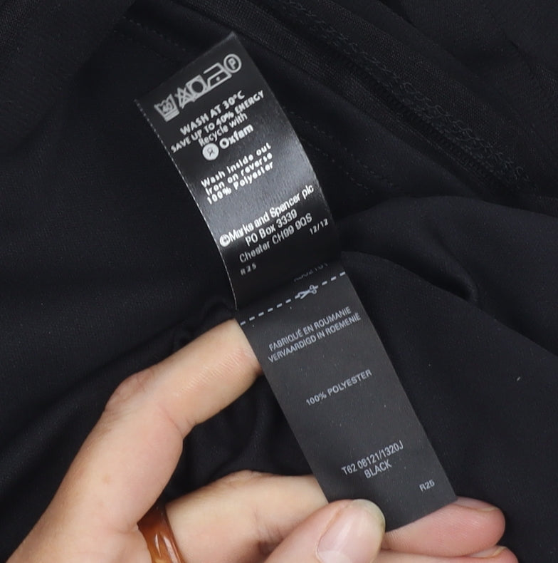 Discover the elegance of this Marks and Spencer Women's Wrap Top in classic black. Designed in a comfortable size 14, this top is crafted exclusively from 100% polyester, ensuring both durability and graceful drape. The short sleeves and boat neckline add a subtle touch of sophistication, making it perfect for various occasions. The solid black design enhances its versatility, fitting seamlessly into both casual and formal wardrobes. With its stylish wrap style, this piece accentuates your silhouette while maintaining a modern edge. Whether you're dressing up for an evening out or adding a refined touch to a professional ensemble, this top is your ideal choice. Enjoy the convenience of machine washable care, making it perfect for everyday wear. Elevate your style effortlessly with Marks and Spencer’s timeless addition to your collection. Order now and experience the unmatched quality and chic appeal of this exquisite wardrobe essential.