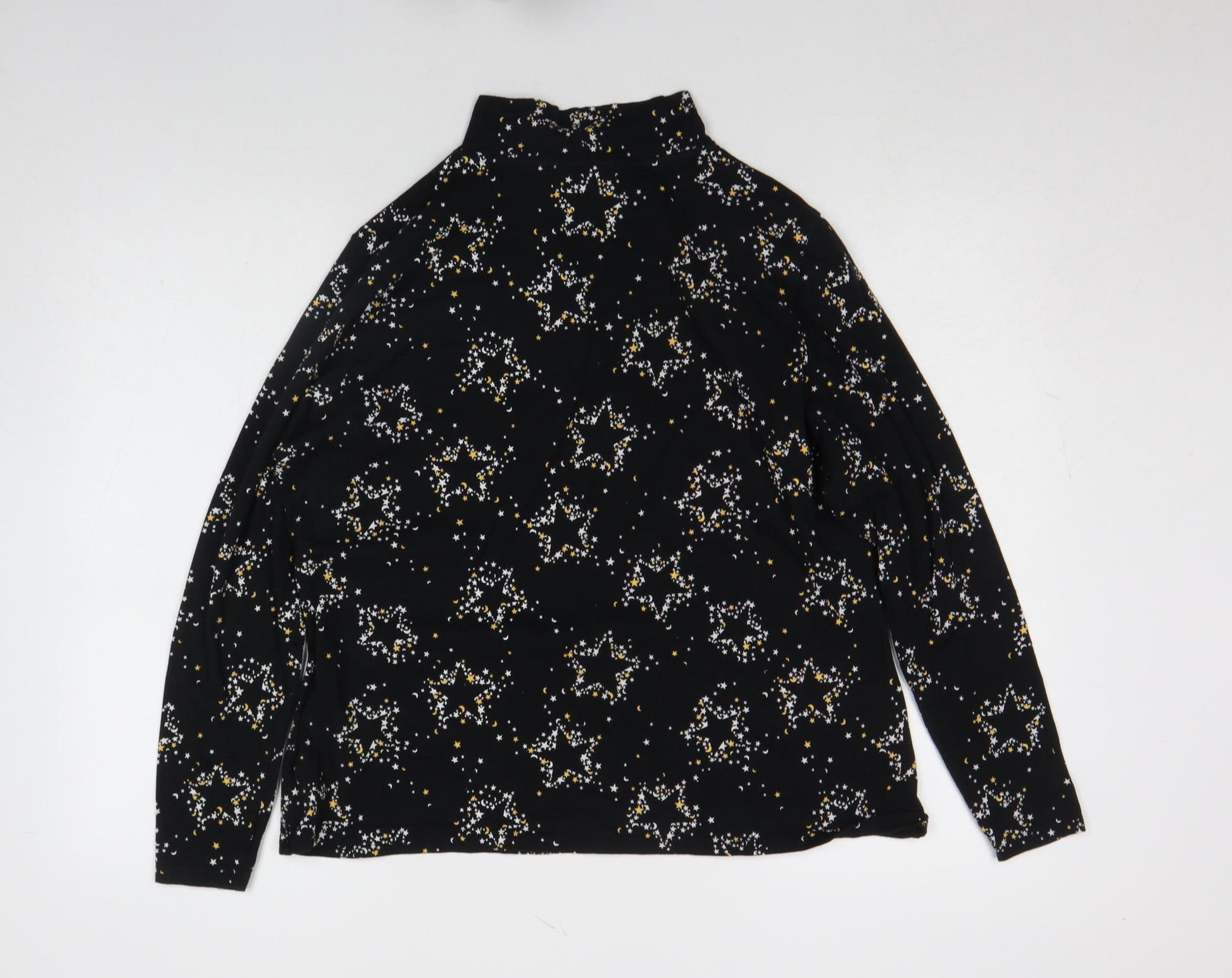 Womens Black Star Print Mock Neck Long Sleeve Jersey Top Size 20