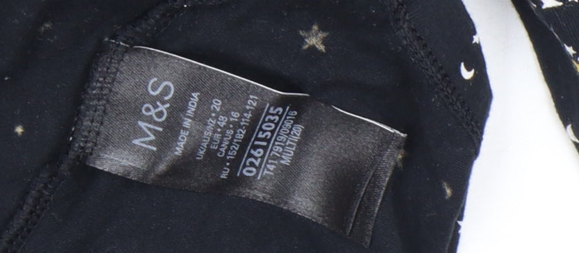 Add a touch of celestial charm to your casual wardrobe with this Marks and Spencer women’s long sleeve top. In a versatile Size 20, this beautifully soft jersey top is crafted from a comfortable blend of 95% cotton and 5% elastane, offering both breathability and a gentle stretch for all-day comfort. The black base with an all-over star pattern lends a contemporary twist to an everyday essential, perfect for those who love subtle prints with a touch of personality. Designed with a flattering mock neckline, this top pairs effortlessly with jeans, skirts, or tailored trousers for smart-casual or relaxed looks. The long sleeves make it ideal for layering under jumpers or jackets during the colder seasons, while remaining lightweight enough for transitional weather. A wardrobe staple, this piece combines practicality and style, reflecting the quality you’d expect from Marks and Spencer. In excellent pre-loved condition with light wear and no marks, it’s ready to bring comfort and charm into your everyday rotation. Machine washable for easy garment care, this top is as convenient as it is chic. Whether for workwear, casual outings, or relaxed evenings, it’s a versatile choice that balances comfort and character. Capture an effortlessly refined look with this everyday favourite, blending timeless style with the whimsical beauty of a starlit sky.