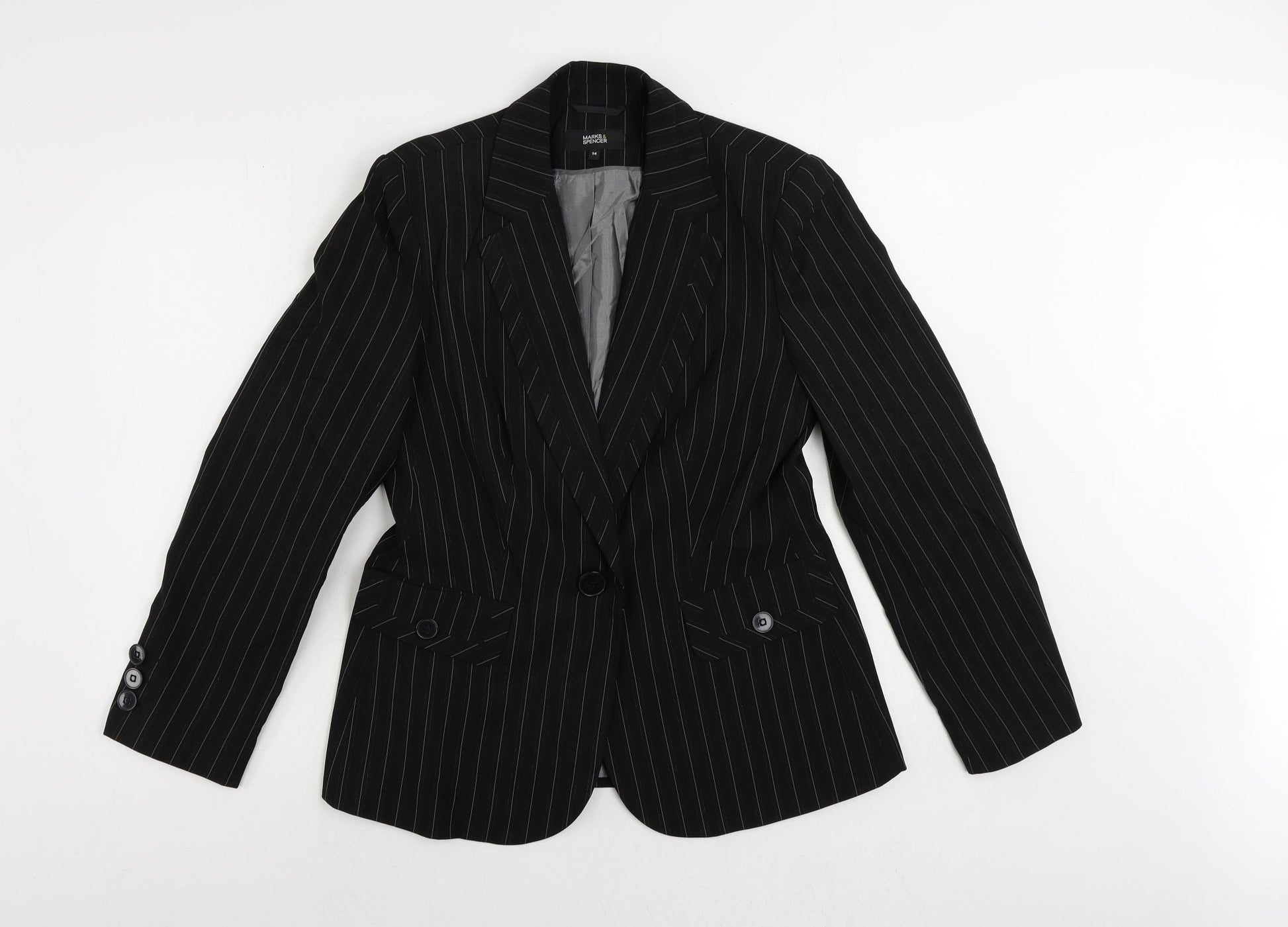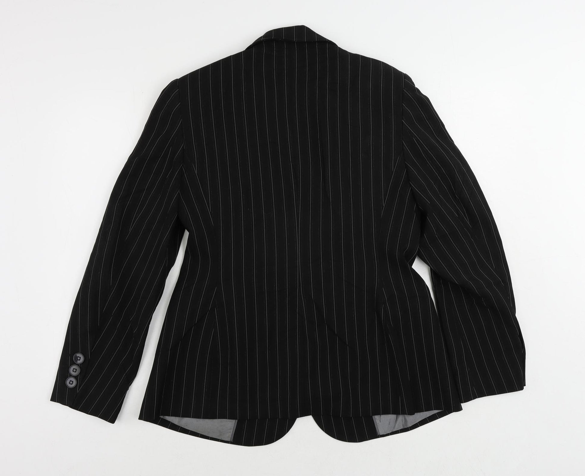 Womens Black Striped Jacket Blazer Size 14 Button