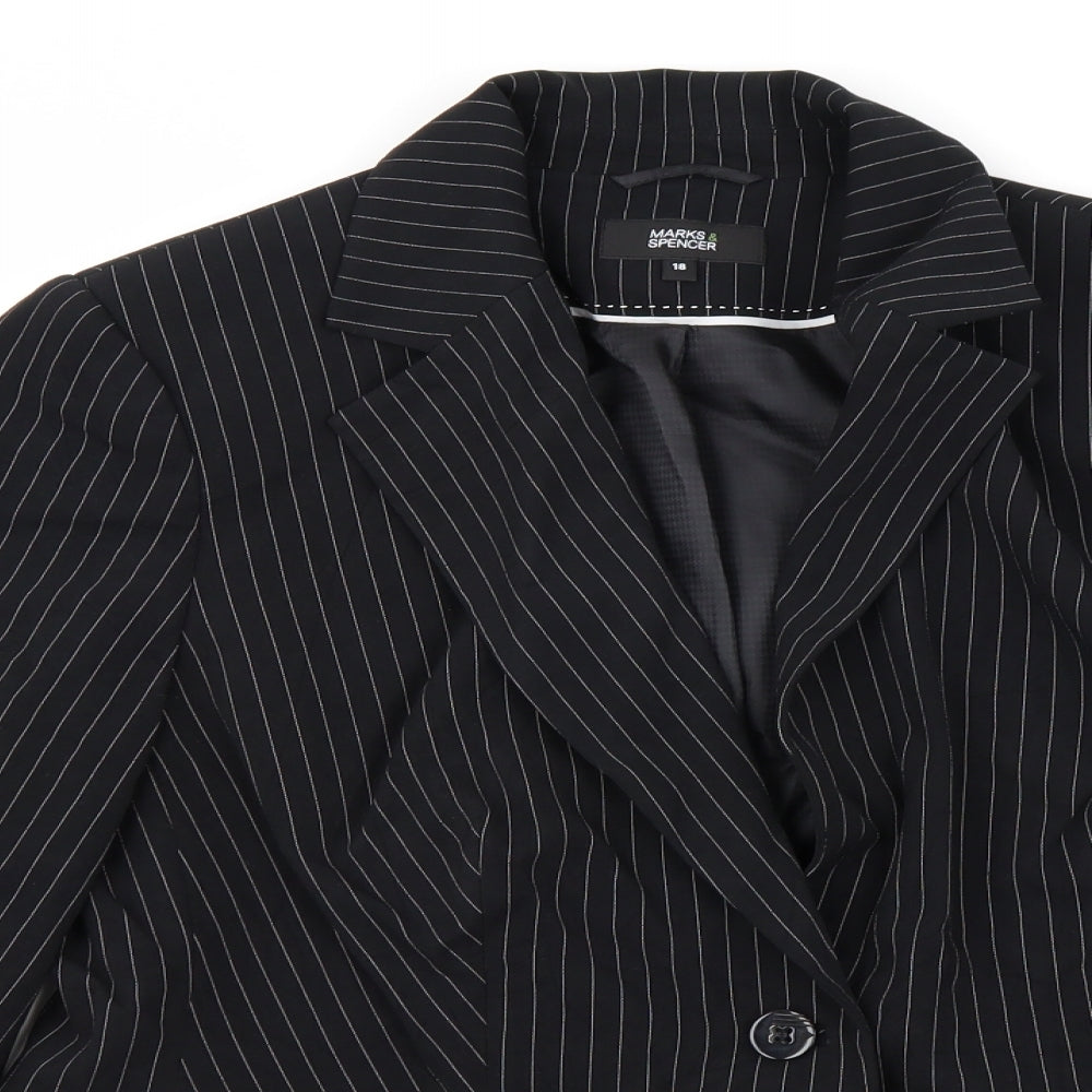Womens Black Striped Jacket Blazer Size 16