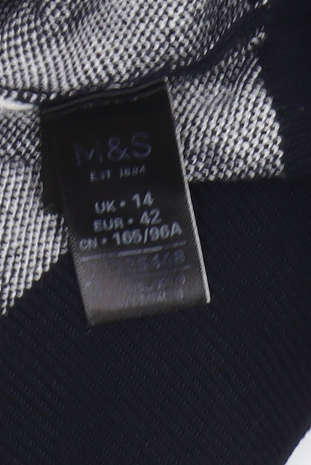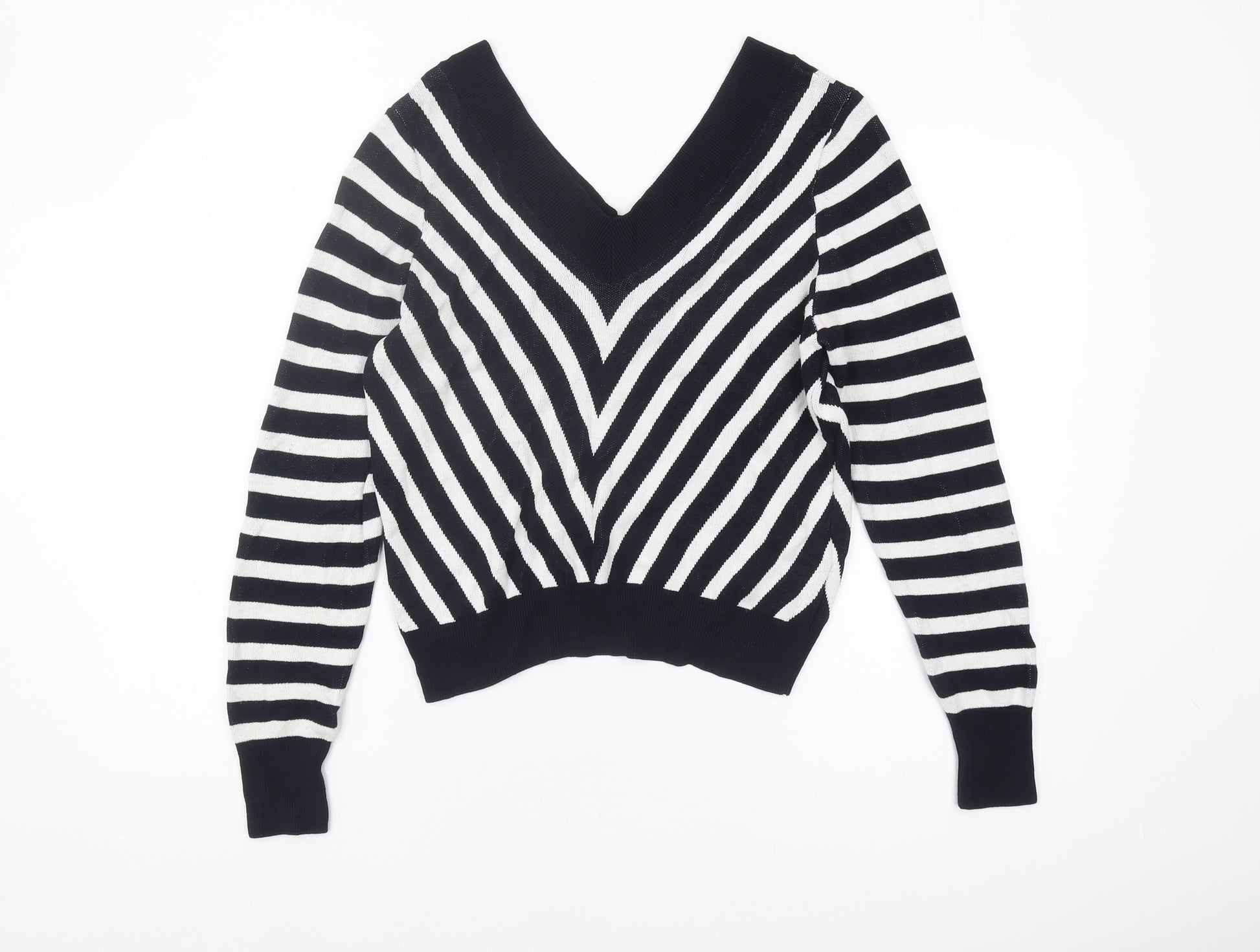 Elevate your wardrobe with this classic women's jumper from Marks and Spencer. Crafted with precision, this jumper features a timeless black and white striped pattern that effortlessly complements any outfit. The V-neckline adds a touch of elegance, making it perfect for casual outings or a relaxed day at home.Made from a luxurious blend of 85% viscose and 15% polyester, this pullover provides a soft and comfortable fit, excellent for all-day wear. Its long sleeves offer added warmth, while the lightweight knit fabric ensures breathability and ease of movement. Designed with practicality in mind, this jumper is machine washable, allowing for easy care and maintenance.Ideal for casual occasions, its versatile style makes it a piece you'll reach for again and again. Whether paired with jeans or dressed up with a skirt, this jumper is your go-to for simple yet stylish fashion. Its modern design and high-quality materials promise both durability and a chic aesthetic.Choose this Marks and Spencer jumper to bring a touch of classic charm to your everyday wardrobe. Its understated elegance and superior comfort make it a smart addition to any fashion-forward collection. Don't miss the chance to make this wardrobe staple yours!