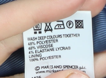 Elevate your wardrobe with this versatile Marks and Spencer women's suit jacket. Perfect for both business and casual settings, this black suit jacket adds a touch of sophistication to any outfit. Crafted from a premium blend of polyester, viscose, and elastane, this jacket offers a comfortable, tailored fit that's both durable and lightweight. The jacket features a classic single-breasted cut and a two-button front, making it an ideal choice for layering over blouses or tops. With its full-length sleeves and elegant lining, it offers both style and comfort. The modern design is enhanced with lined inner pockets, adding practicality without compromising on style. Whether you're dressing for a formal meeting or a casual outing, this jacket is a timeless addition to any wardrobe. Wear it with matching trousers or mix and match with different separates to create a look that’s uniquely yours.