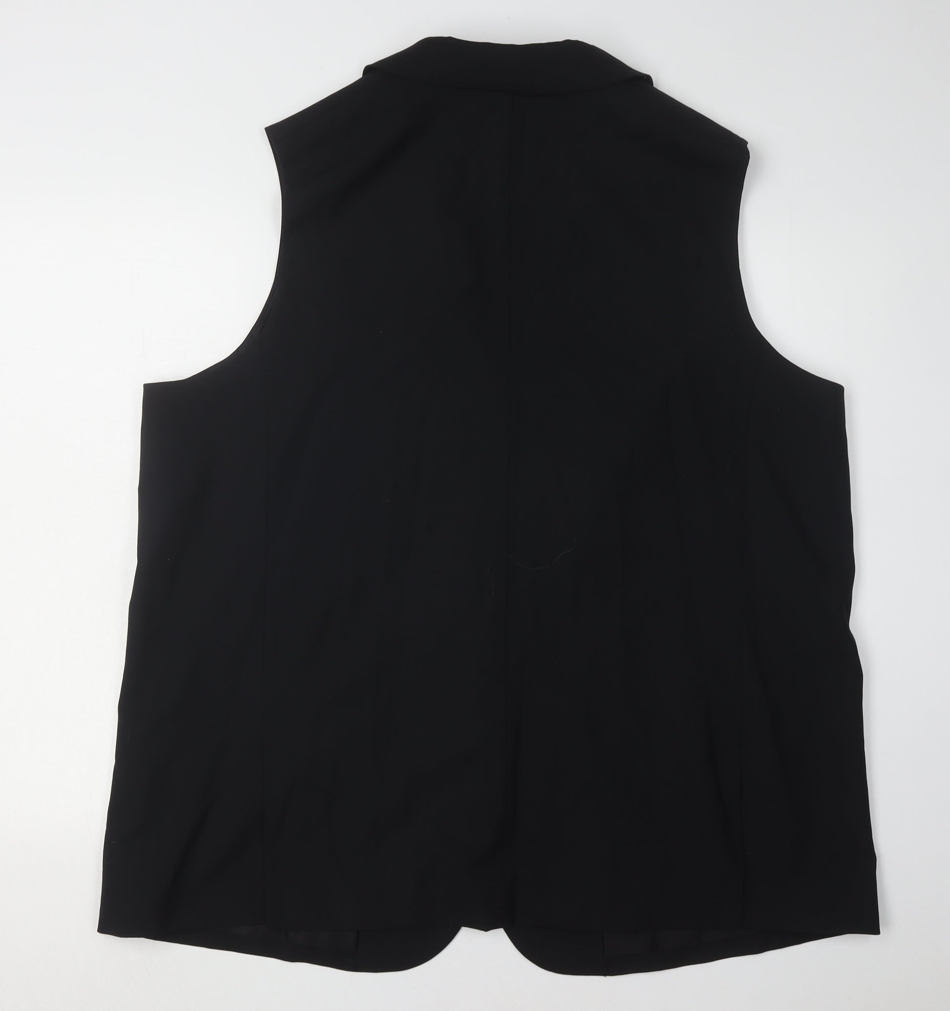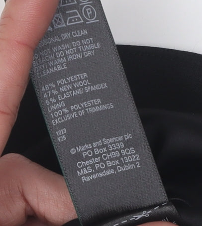 Elevate your wardrobe with this classic black suit waistcoat from Marks and Spencer. Designed for women, this waistcoat is tailored for a regular fit, offering a sophisticated yet comfortable wear. Crafted as a blend of high-quality materials, including polyester, wool, and elastane, it boasts durability and a refined feel. The piece features a notch lapel and a chic two-button front closure, making it an ideal choice for both professional and formal occasions. Its sleeveless design ensures easy layering, while the fully lined interior adds a luxurious touch. Though gently used, its excellent condition ensures it maintains its stylish allure. Perfect for adding a polished finish to your outfit, whether for work or an evening event. Don't miss the chance to own a versatile staple that speaks to timeless elegance.