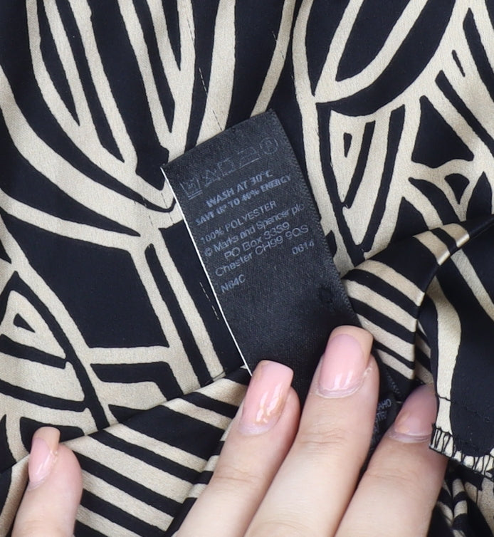 Elevate your wardrobe with this stylish top from Marks and Spencer. Designed for women, this black top features a striking design that adds a touch of sophistication to any outfit. Crafted from high-quality polyester, the material ensures durability and a smooth finish. The top showcases a classic round neckline, making it versatile for both casual and formal occasions. With its excellent condition and no visible flaws, this piece is ready to become a staple in your wardrobe. Perfect for all seasons, it can be paired with your favourite jeans or skirts for a complete look. The top is easy to care for, being machine washable, ensuring convenience for your daily wear. Don't miss out on this chic and elegant addition to your collection, available now at an attractive price.