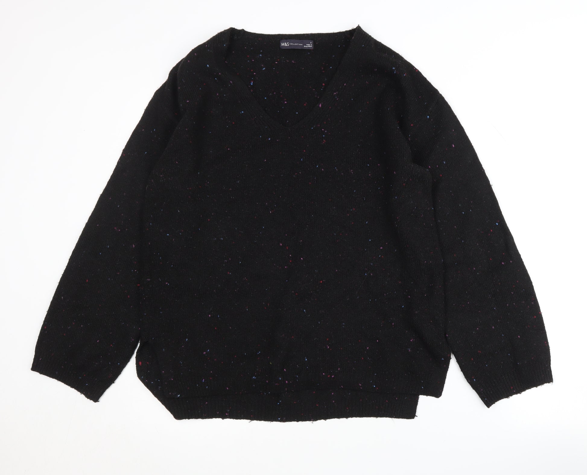 Women's Black V-Neck Pullover Jumper, Size S