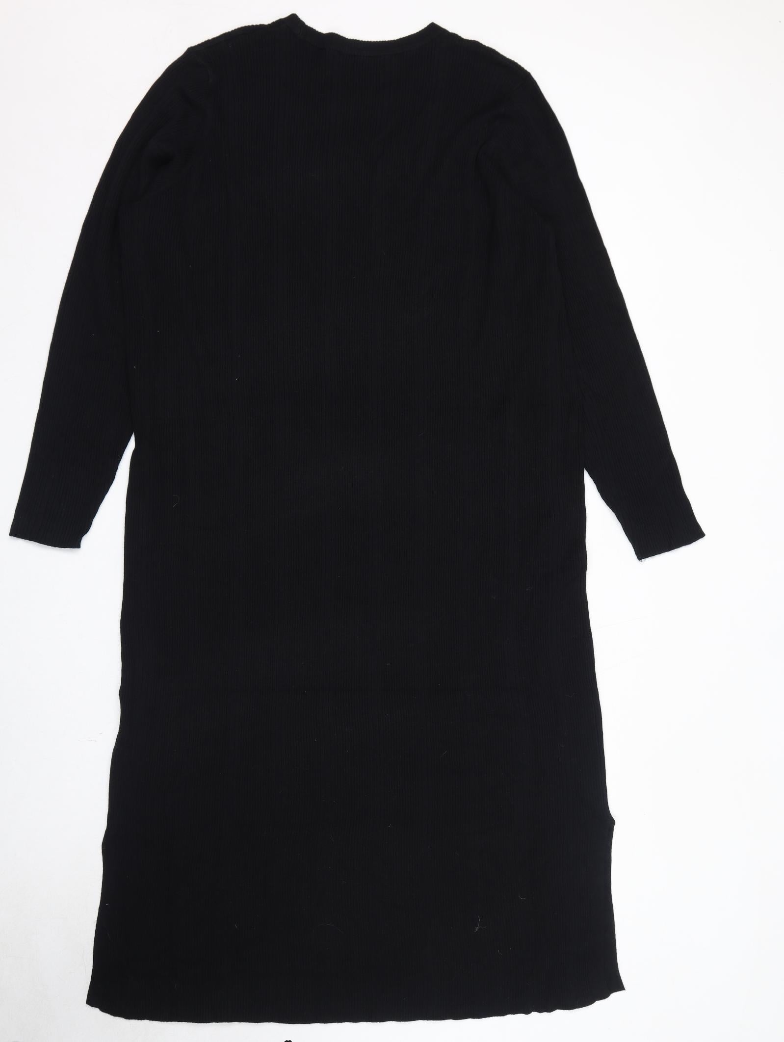 Womens Black Viscose Jumper Dress Size 24 Round Neck Pullover