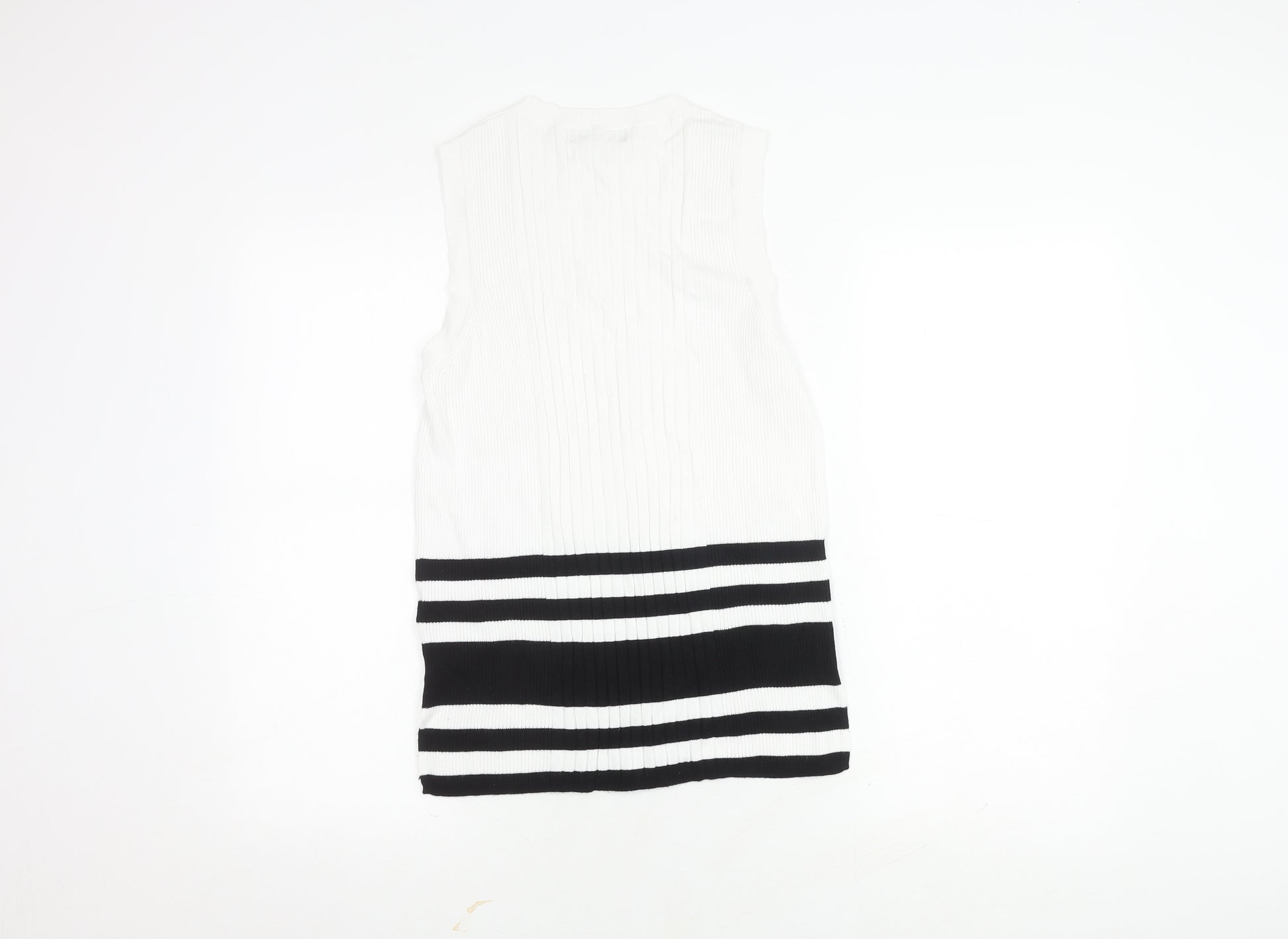 This stylish sleeveless top by Marks and Spencer is perfect for the modern woman seeking comfort and elegance. Available in a classic black and white colourblock design, this top is made from a blend of viscose and polyamide, offering a soft and gentle feel on the skin. With its machine washable nature, maintaining its fresh appearance is a breeze. Ideal for casual outings or smart-casual gatherings, this top exudes versatility. Tailored for a regular fit, it ensures ease of movement and a flattering silhouette. Update your wardrobe with this sophisticated piece and enjoy its timeless appeal.