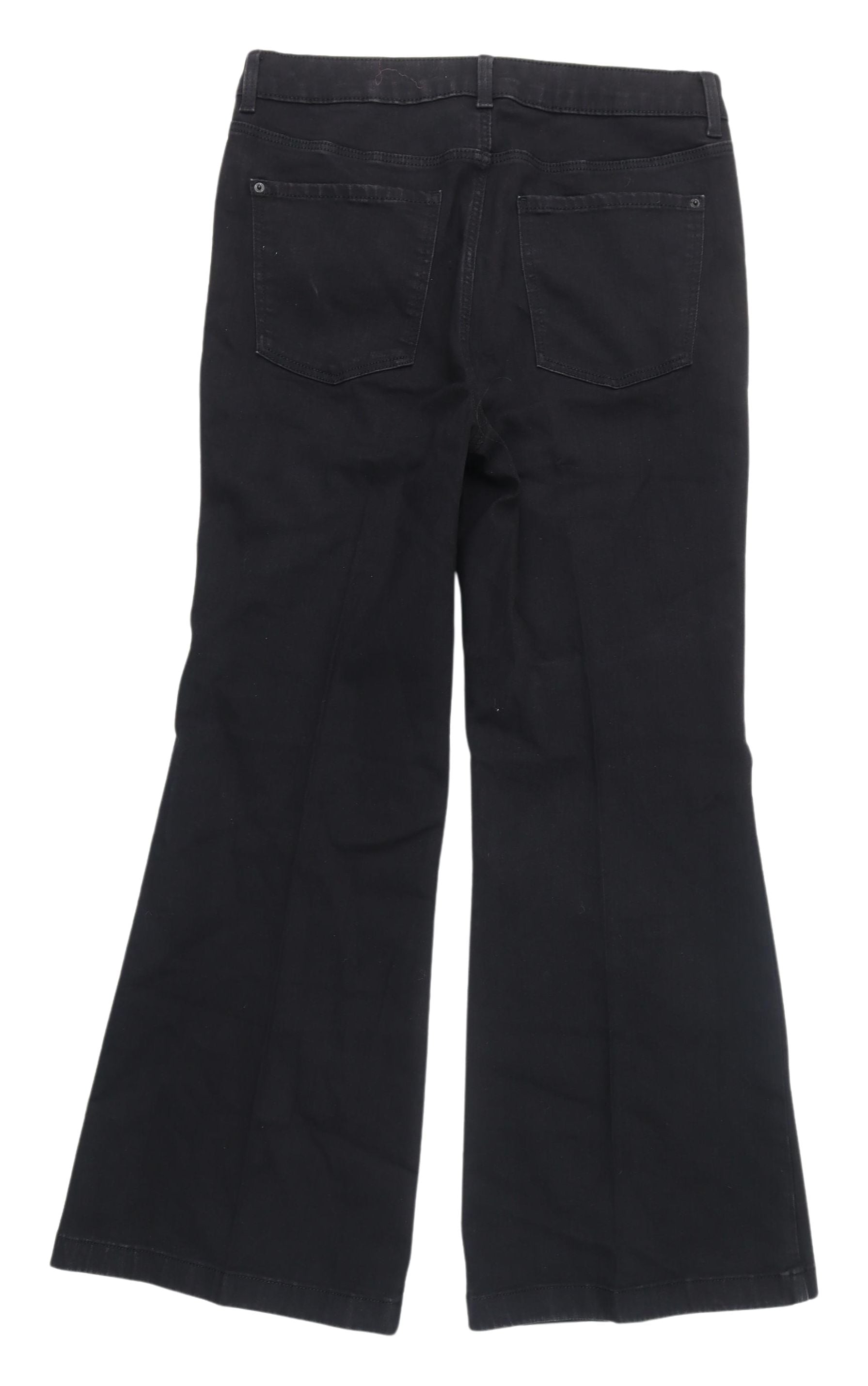 Elevate your wardrobe with these elegant black wide-leg jeans from Marks and Spencer, designed for women who appreciate style and comfort. These jeans feature a flattering regular fit, perfect for a stylish yet laid-back look. Crafted from high-quality denim, the jeans combine 74% cotton for breathability, 24% polyester for durability, and 2% elastane to ensure a slight stretch, making them a comfortable choice for everyday wear. With a classic button closure and a 5-pocket design, these versatile jeans are ideal for both casual and dressier occasions. The dark fabric wash gives them a sleek, clean look, while the wide-leg style adds a contemporary flair. Perfect for autumn and winter wardrobes, these jeans can be effortlessly paired with a range of tops and shoes. Their excellent condition ensures they are a great addition to your fashion collection. Don't miss the chance to make these chic black jeans a part of your repertoire and enjoy the timeless quality and style of Marks and Spencer.