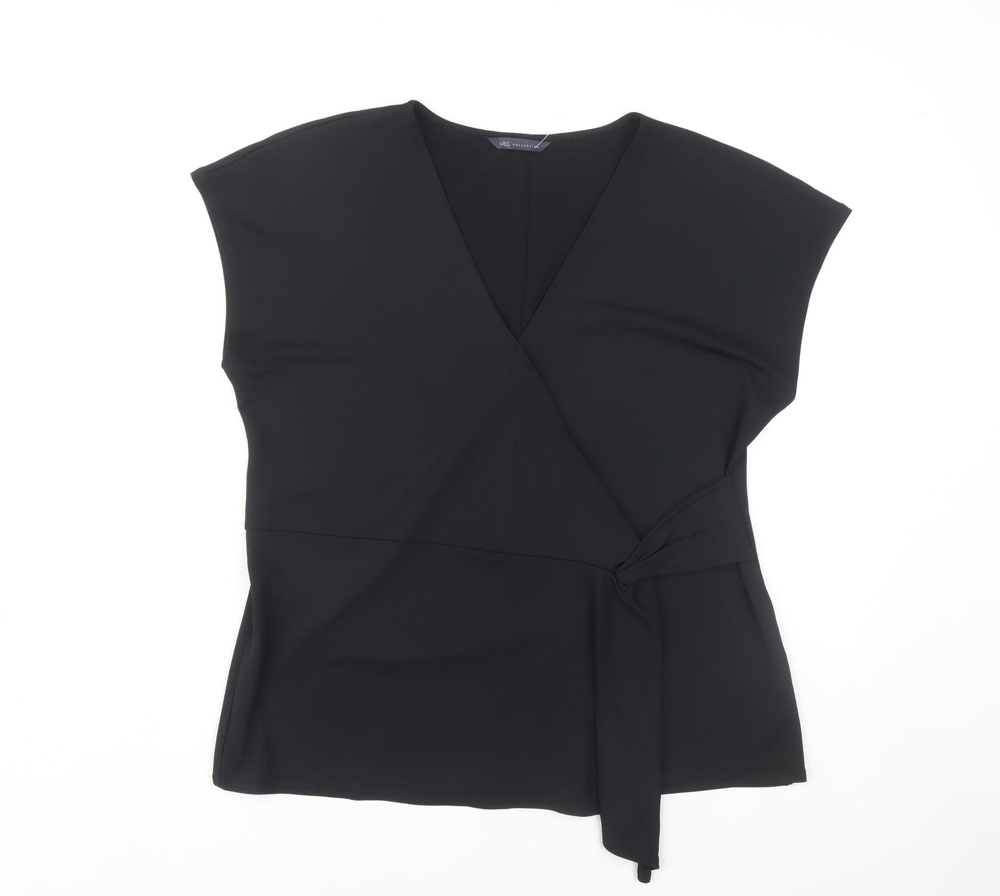 Enhance your wardrobe with this elegant black wrap blouse from Marks and Spencer, designed for women seeking both style and comfort. Crafted from a blend of high-quality polyester and elastane, this blouse offers a comfortable and flexible fit, allowing you to move with ease. The solid black colour adds a touch of sophistication to any outfit, making it perfect for casual occasions. Featuring a flattering V-neckline and a practical tie closure, this blouse combines fashion with functionality. The regular fit and classic sleeve design contribute to a timeless silhouette that complements various body types. Whether worn with jeans for a relaxed look or paired with tailored trousers for a slightly more polished ensemble, this blouse adapts effortlessly to your style needs. Suitable for all seasons, this versatile piece will become a staple in your wardrobe. Its machine washable nature ensures easy care, making it a convenient addition to your everyday attire. Embrace the understated elegance of this Marks and Spencer blouse and elevate your outfit choices effortlessly. Ideal for casual outings or laid-back gatherings, this blouse offers endless style possibilities, ensuring you look chic wherever you go.