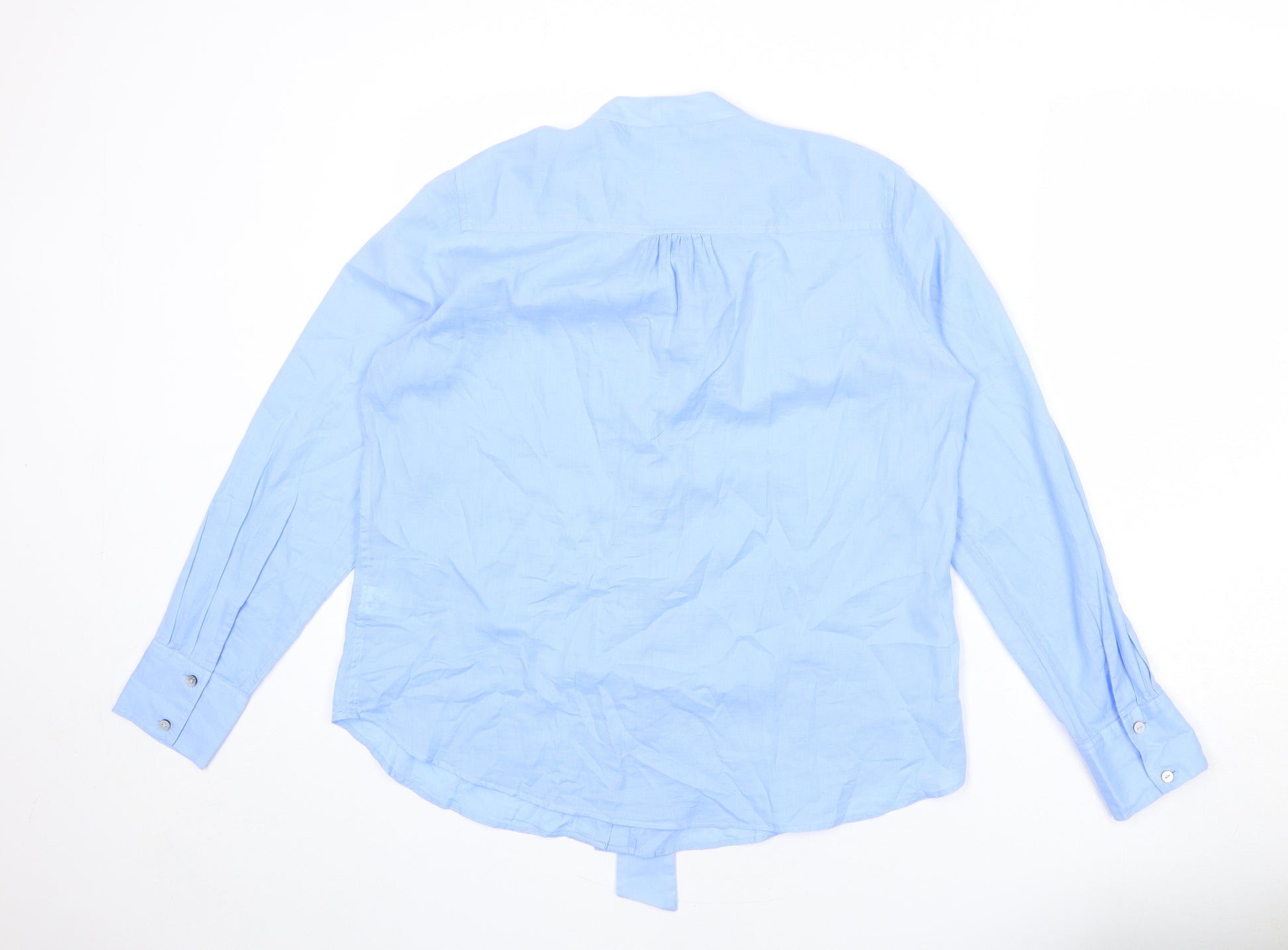 Womens Blue 100% Cotton Basic Blouse Size 14 Round Neck - Button Down, Tie Detail