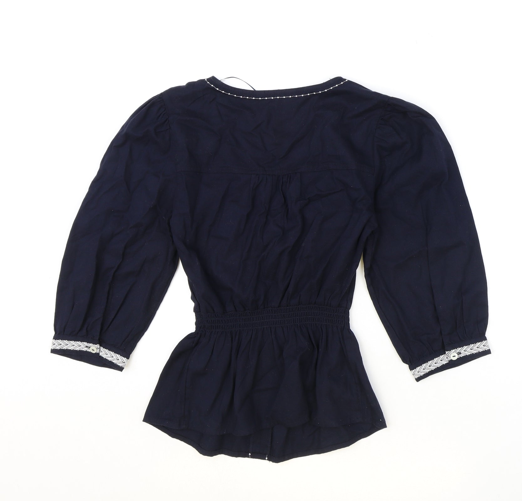 Womens Blue 100% Cotton Basic Blouse Size 6 V-Neck