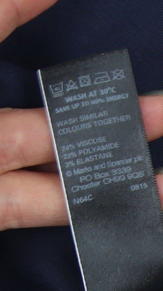 Enhance your wardrobe with this classic Marks and Spencer A-Line skirt in a versatile shade of blue. Tailored for women, this skirt boasts a size 14 fit, ensuring comfort and style for any casual occasion. Crafted with premium materials, it features a smooth blend of 74% viscose, 23% polyamide, and 3% elastane, offering a flexible yet sturdy feel that maintains its shape throughout the day. Designed for effortless wear, it incorporates a secure zip closure and stylish button accents, making it both practical and chic. The skirt showcases a clean, no-pattern design, perfect for pairing with various tops and accessories. While it shows light signs of wear, it remains in excellent condition, promising enduring quality. Machine washable for easy care, this skirt delivers convenience without compromising on style. Experience the timeless appeal of Marks and Spencer with this elegant piece, ideal for enhancing your everyday fashion.