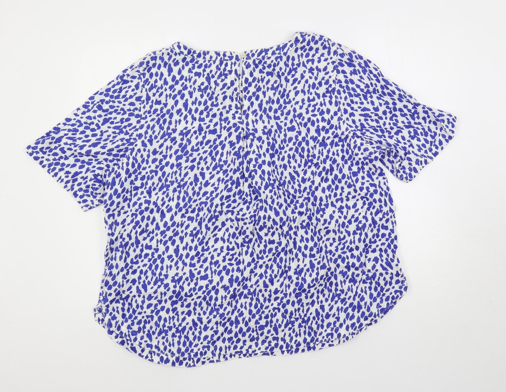 Womens Blue Animal Print Linen Basic Blouse Size 18 Boat Neck