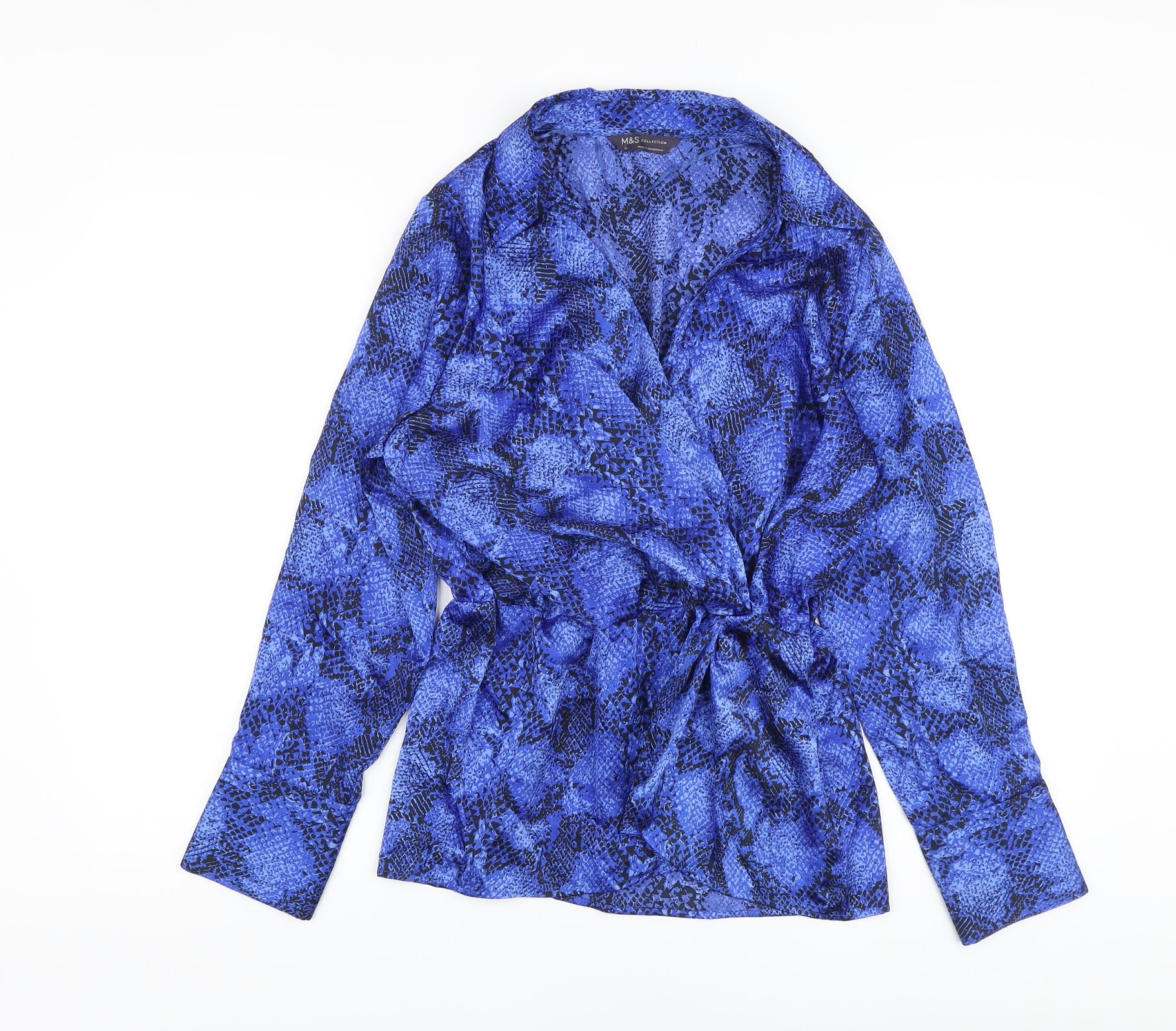 Womens Blue Animal Print Polyester Basic Blouse Size 12 V-Neck