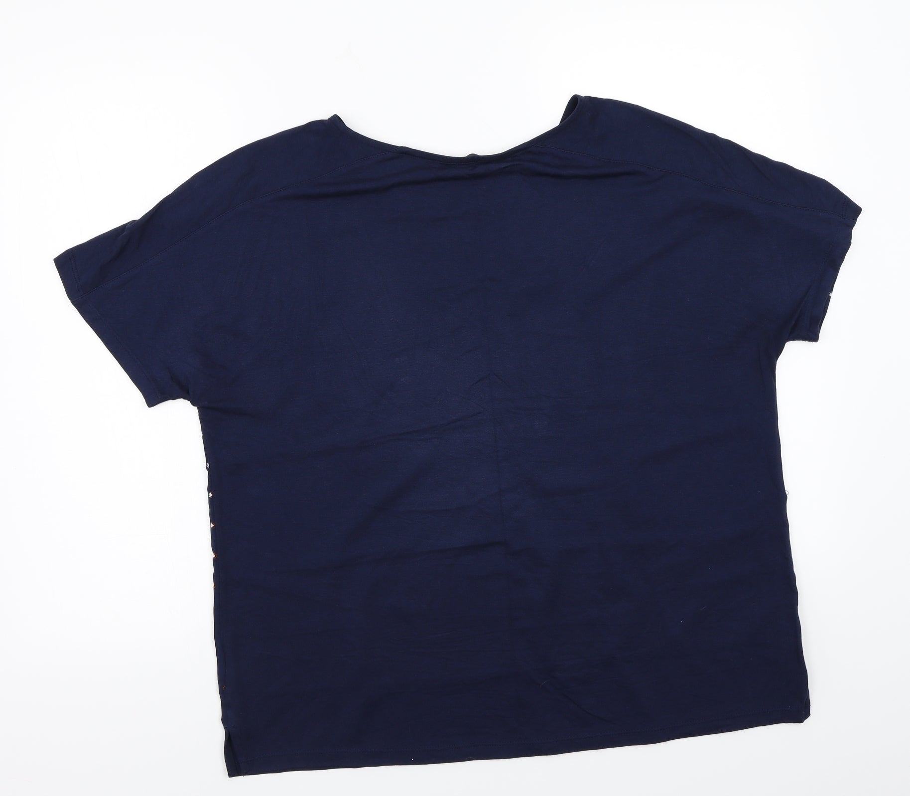 Weird Fish Women's Blue Floral Jersey 3/4 Sleeve Top Size 16