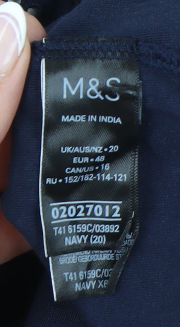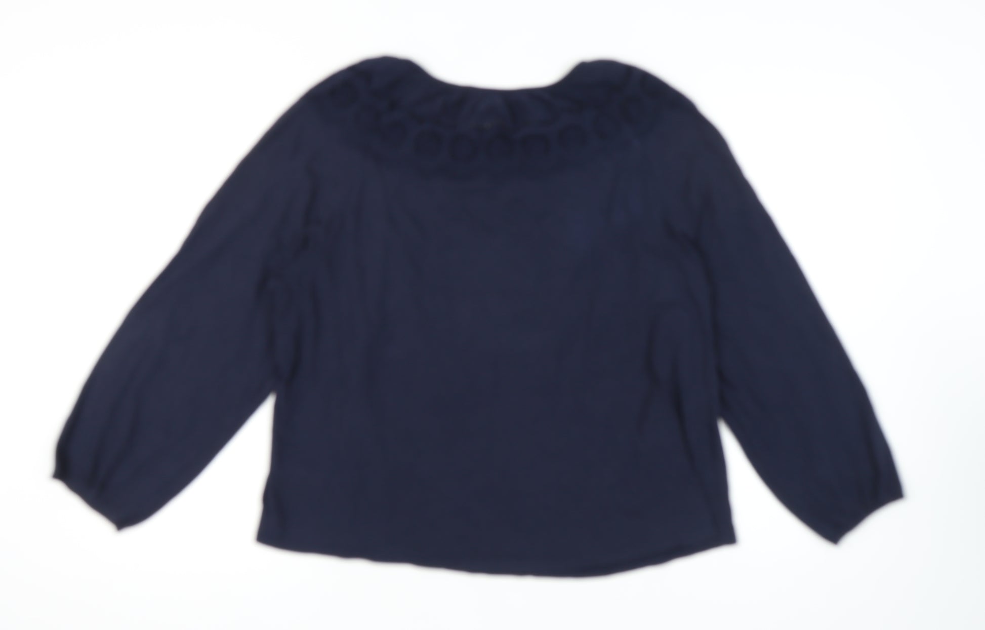 Elevate your wardrobe with this elegant blue blouse from Marks and Spencer, perfect for any casual occasion. Tailored in a comfortable size 20, this long sleeve blouse is crafted from 100% cotton, ensuring a soft touch against your skin. The embroidered accents add a touch of sophistication to the blouse's classic round neckline. With a solid blue hue, it provides a versatile piece that can easily transition from day to night. This regular size type blouse offers an easy fit, making it ideal for women seeking both style and comfort. Easily machine washable, it guarantees easy care while maintaining its graceful look. Despite showing slight creases, this blouse retains its excellent condition, promising durability and style for seasons to come. Pair it with your favourite trousers or skirt for a chic and polished look.
