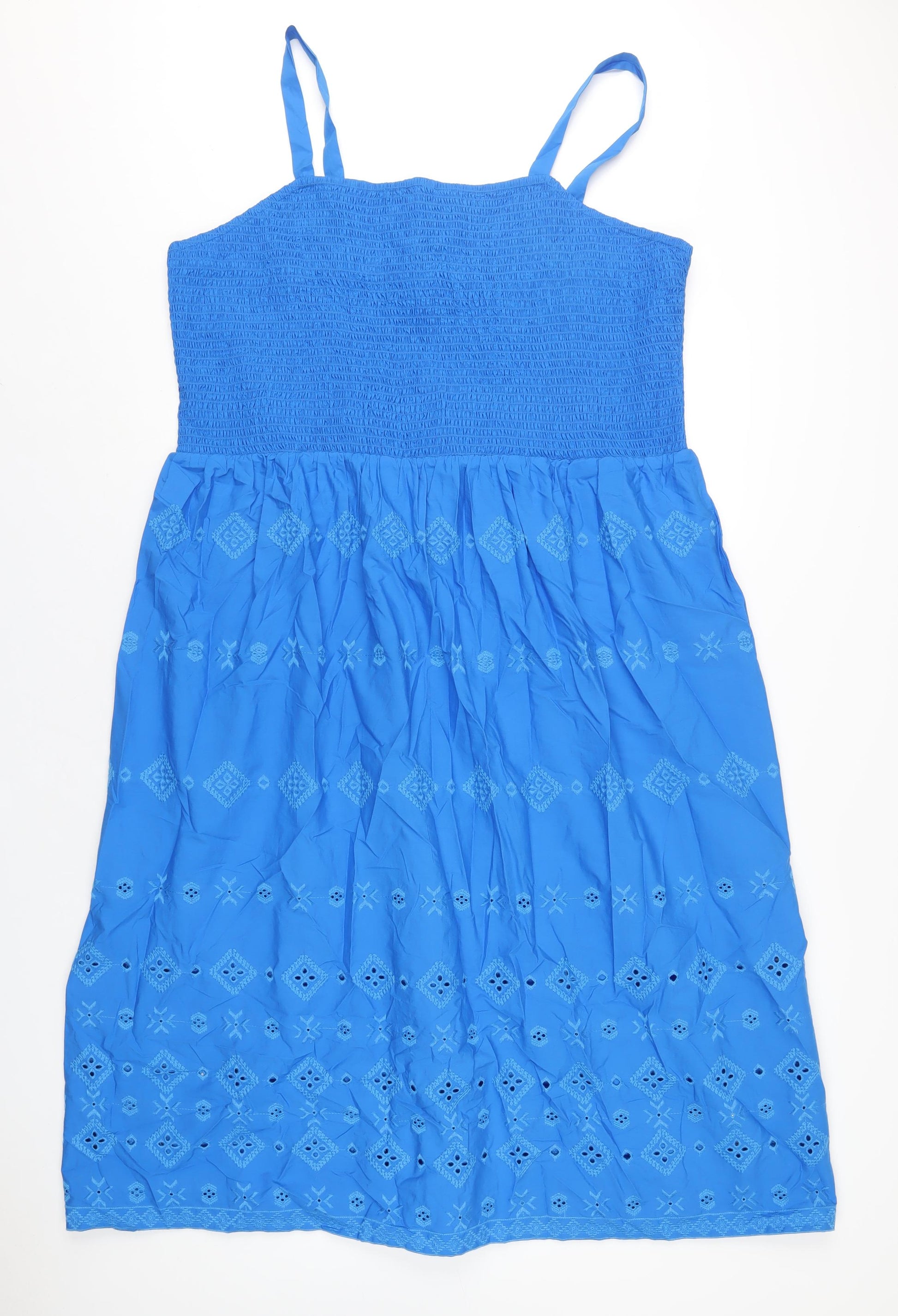 Womens Blue Cotton A-Line Size 22 Square Neck Pullover