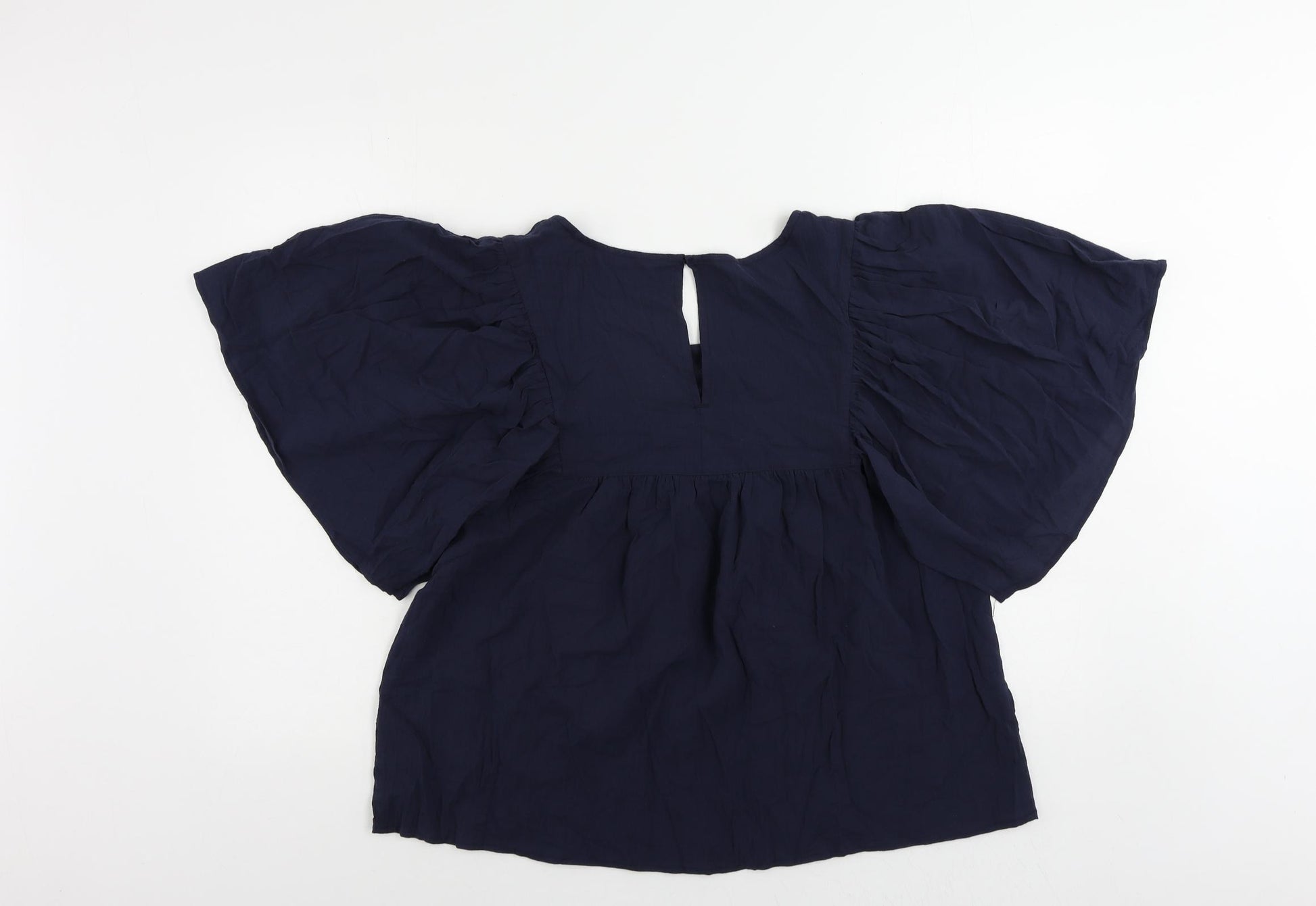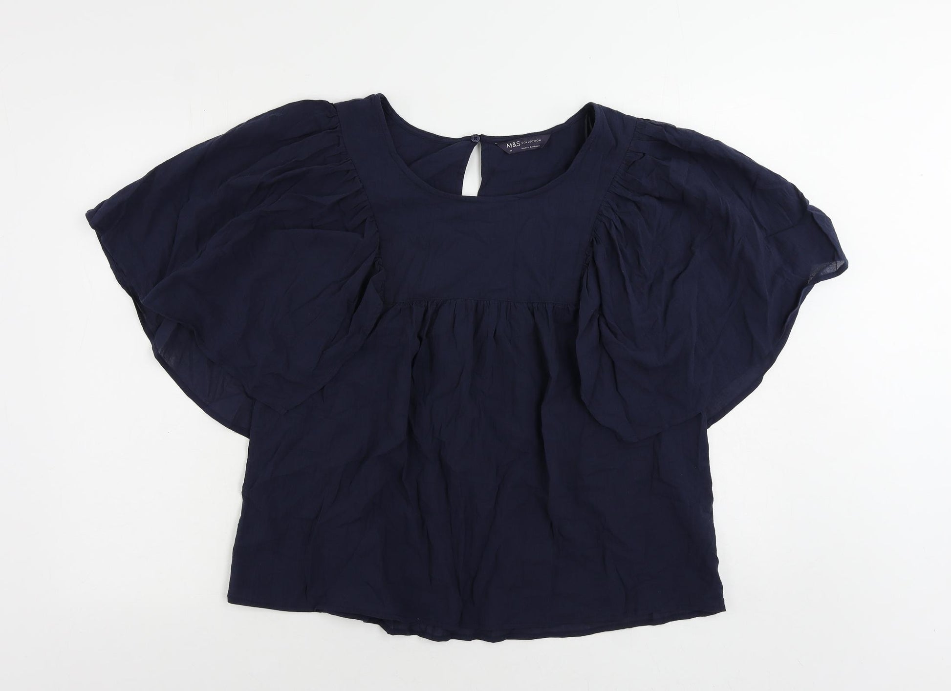 Womens Blue Cotton Basic Blouse Size 14 Round Neck
