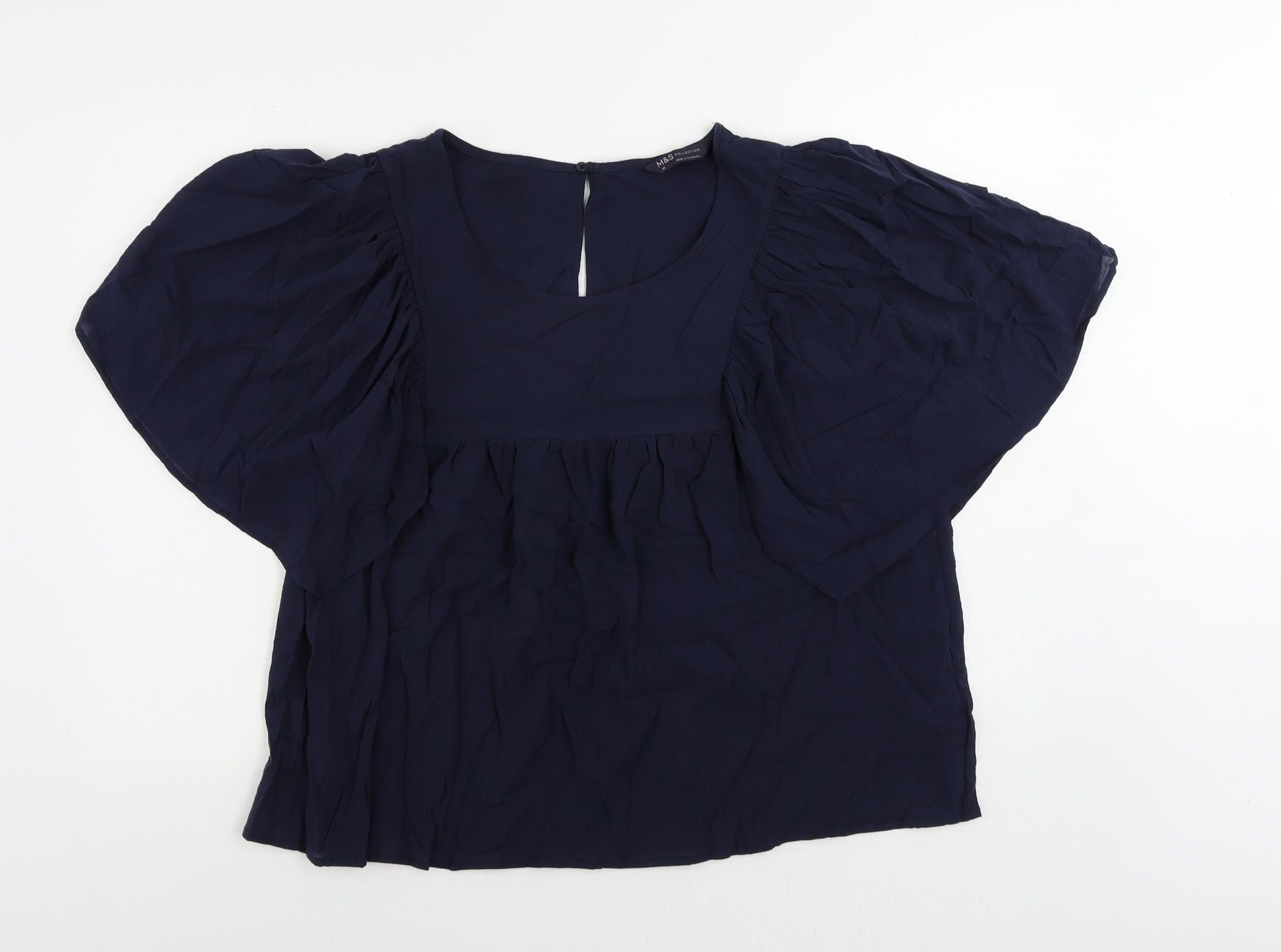 Womens Blue Cotton Basic Blouse Size 20 Round Neck
