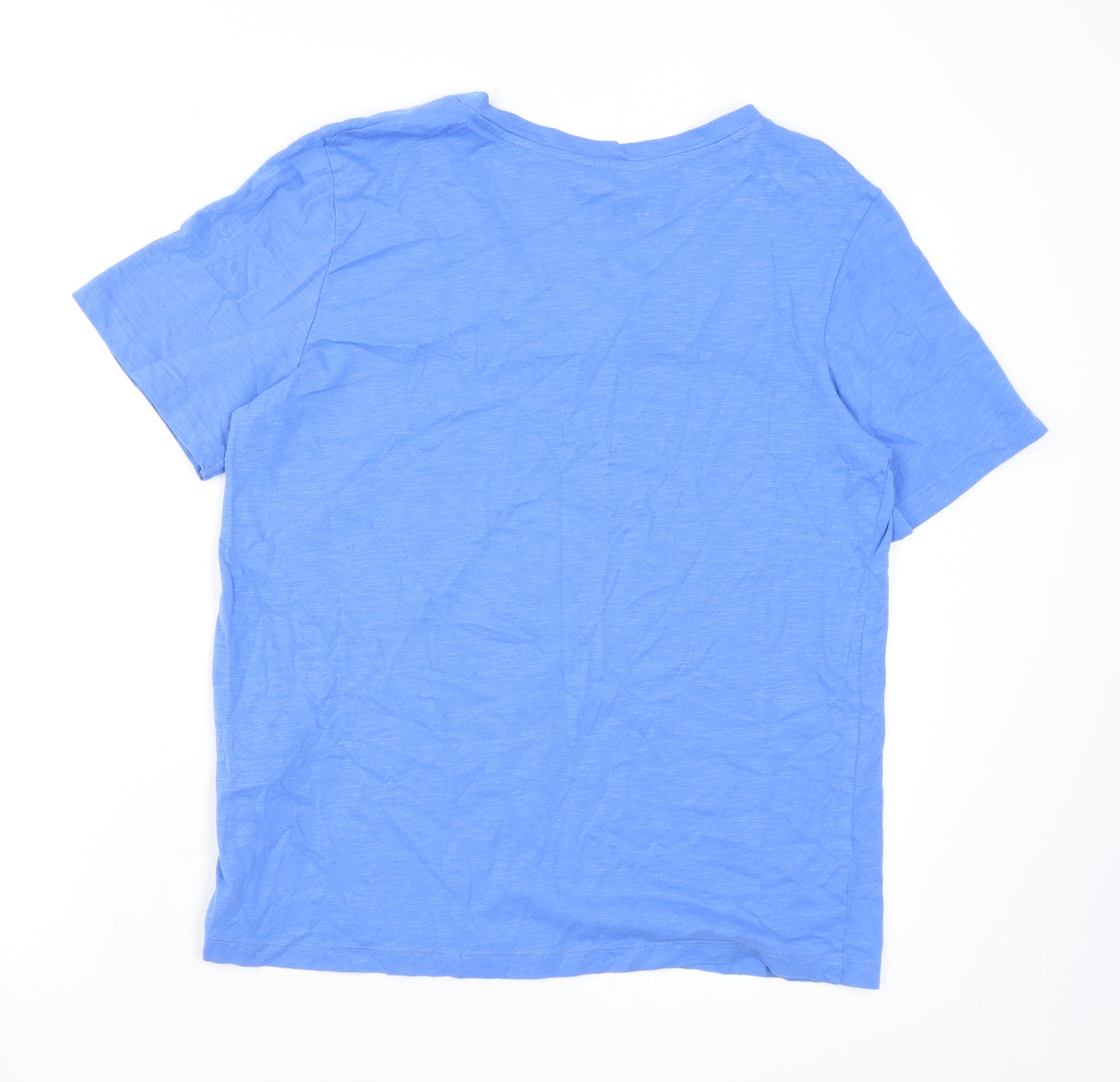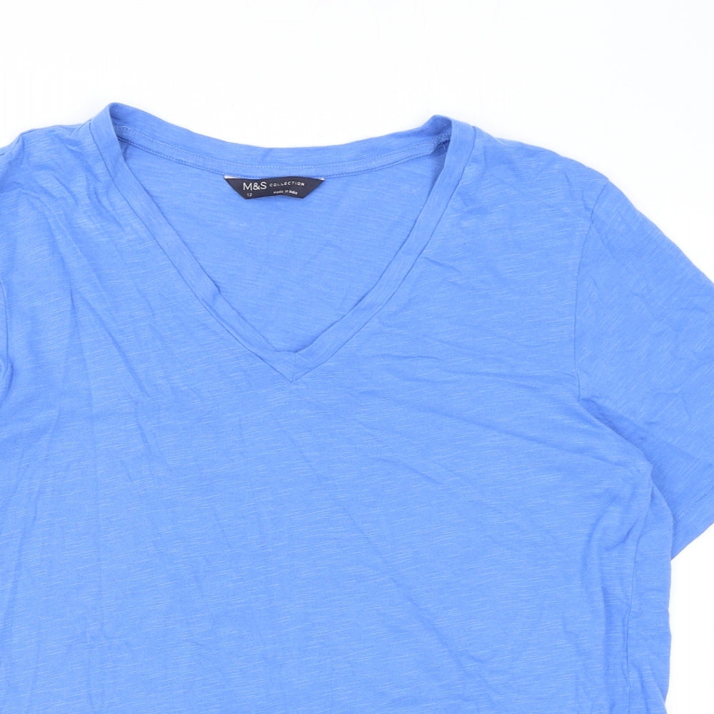 Womens Blue Cotton Basic T-Shirt Size 12 V-Neck