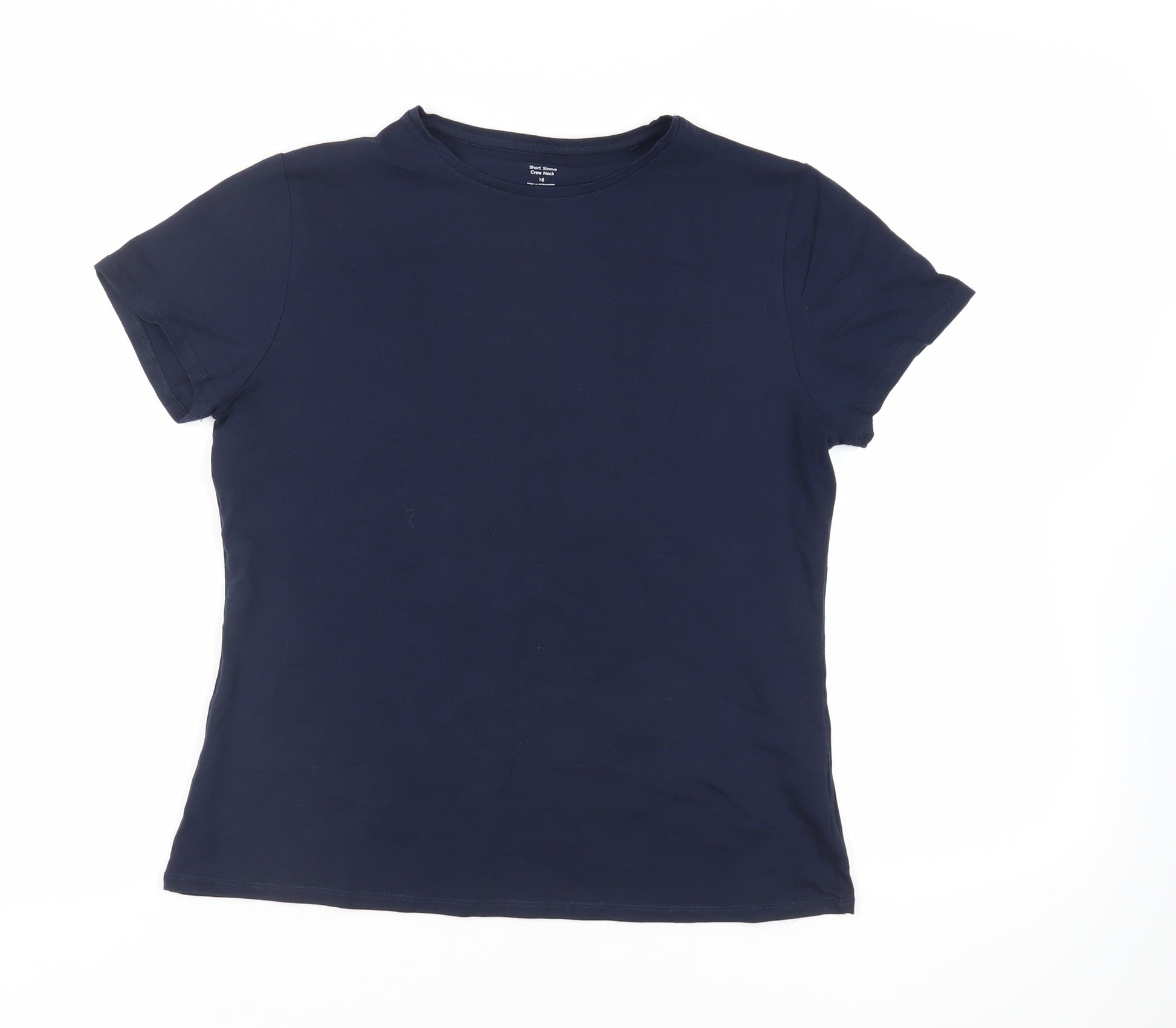 Womens Blue Cotton Basic T-Shirt Size 16 Crew Neck