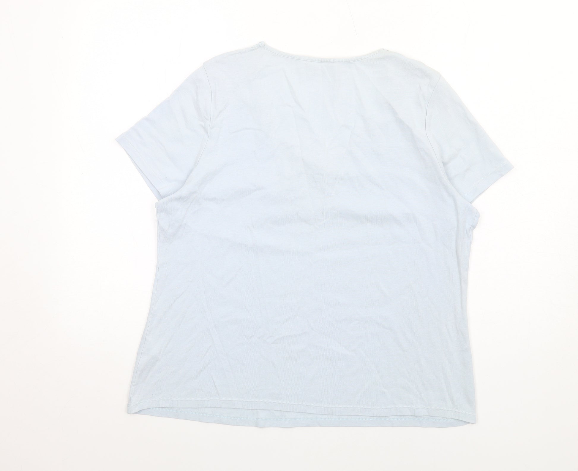 Womens Blue Cotton Basic T-Shirt Size 18 Scoop Neck
