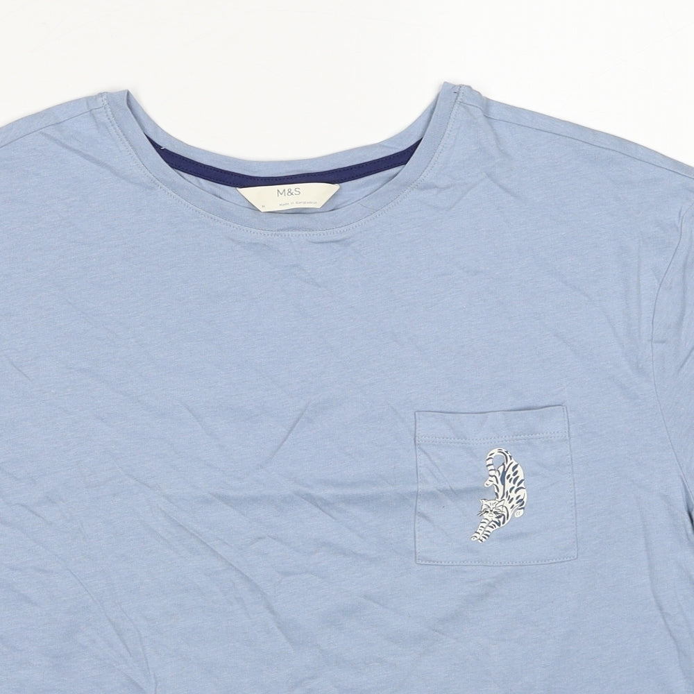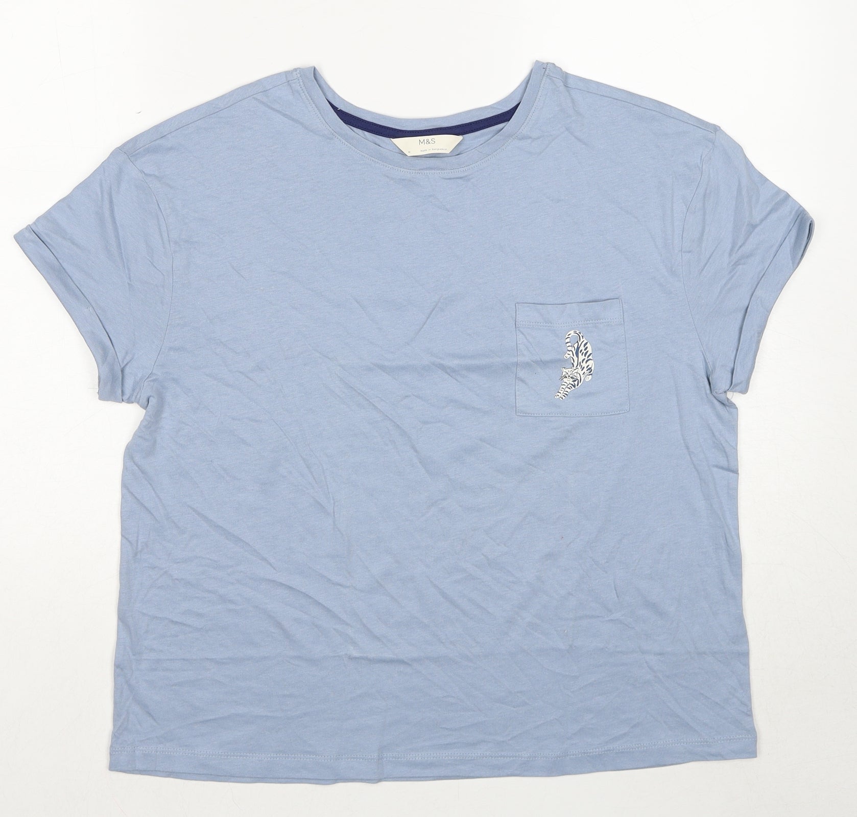 Womens Blue Cotton Basic T-Shirt Size M Round Neck