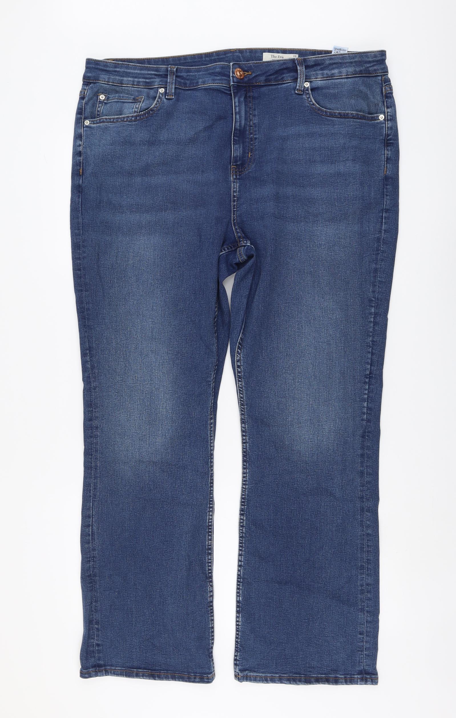Womens Blue Cotton Bootcut Jeans Size 20 L29 in Regular Button