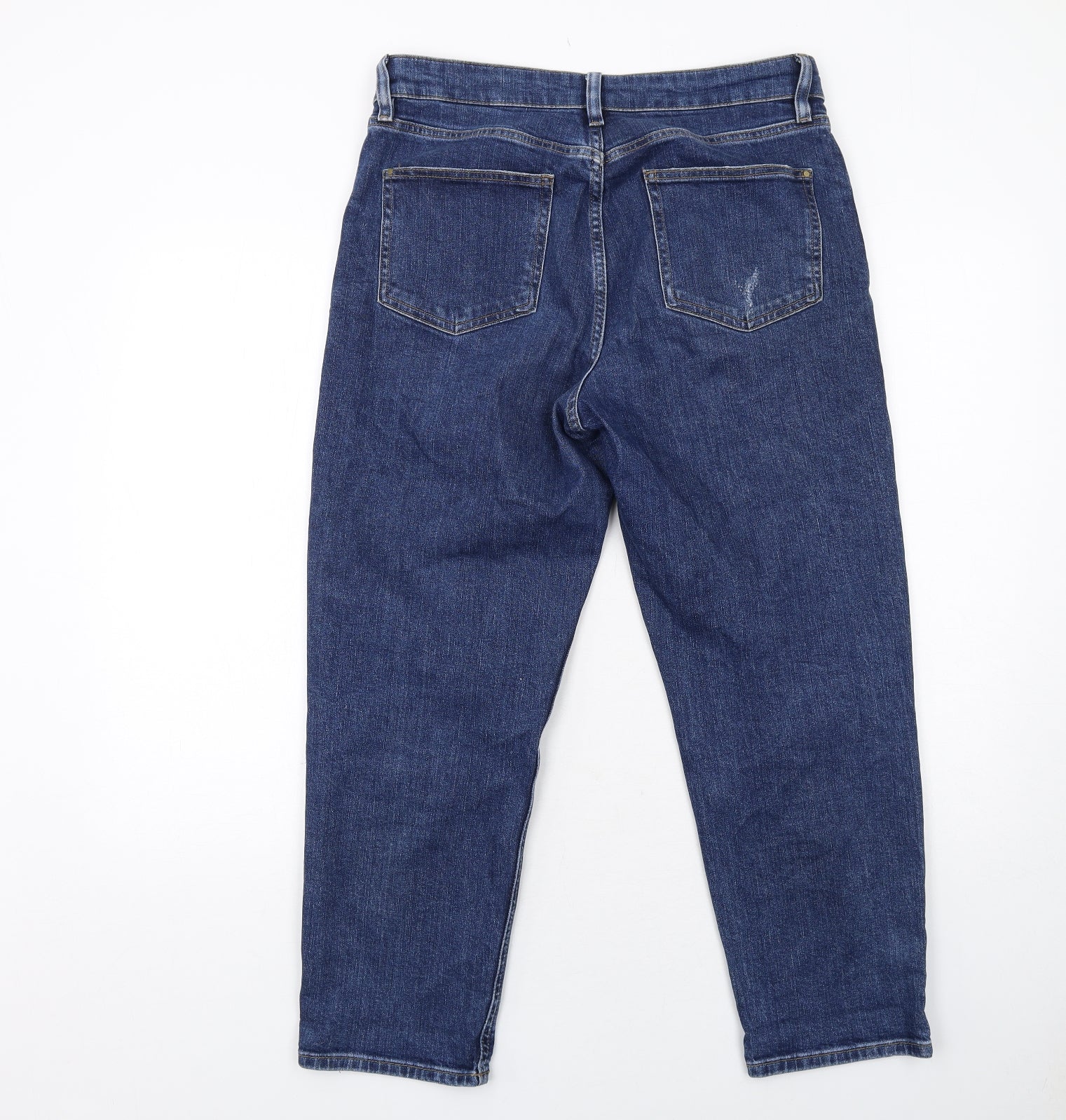 Womens Blue Cotton Boyfriend Jeans Size 12 Regular Zip