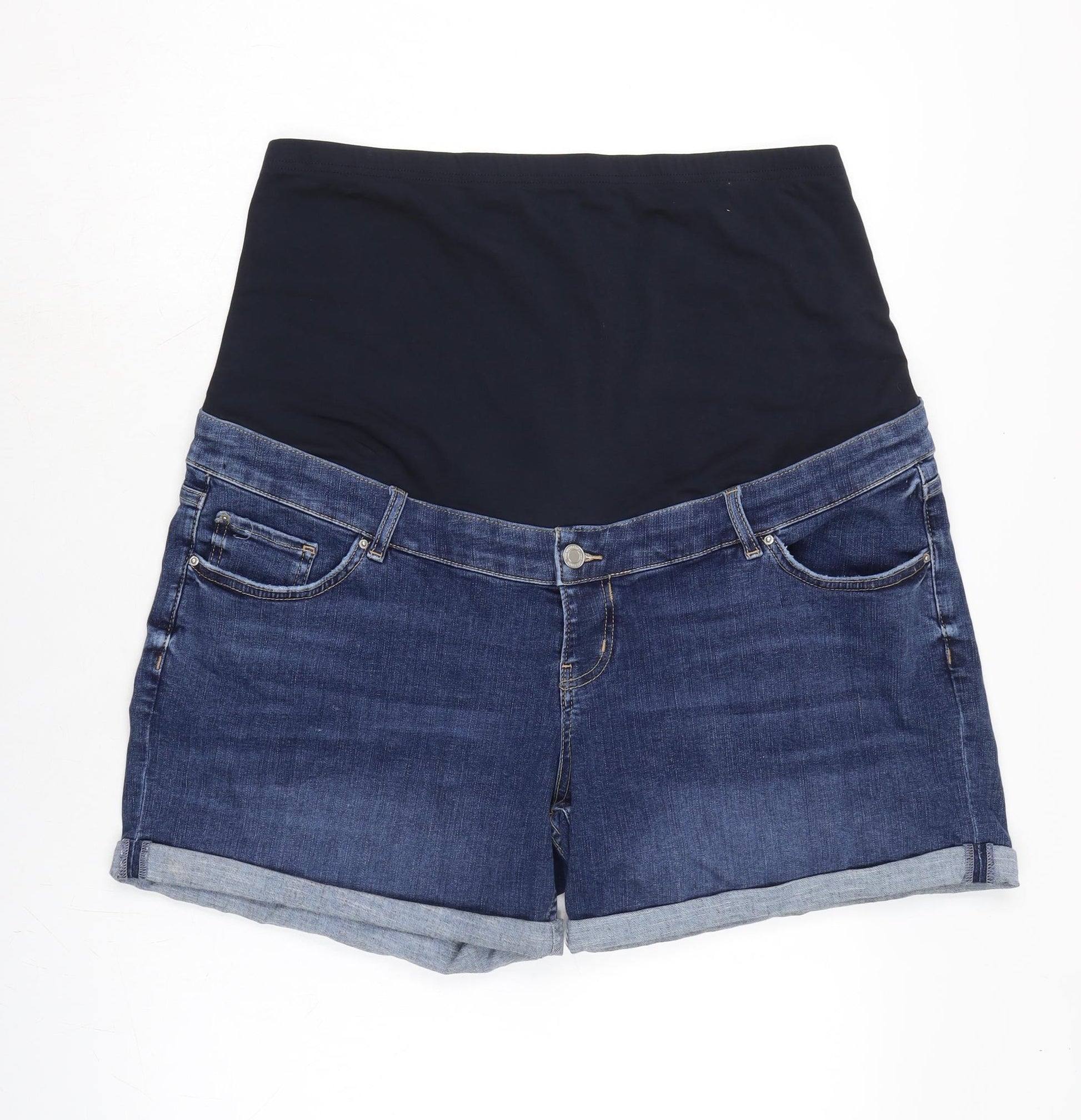 Womens Blue Cotton Boyfriend Shorts Size 20 Regular Button