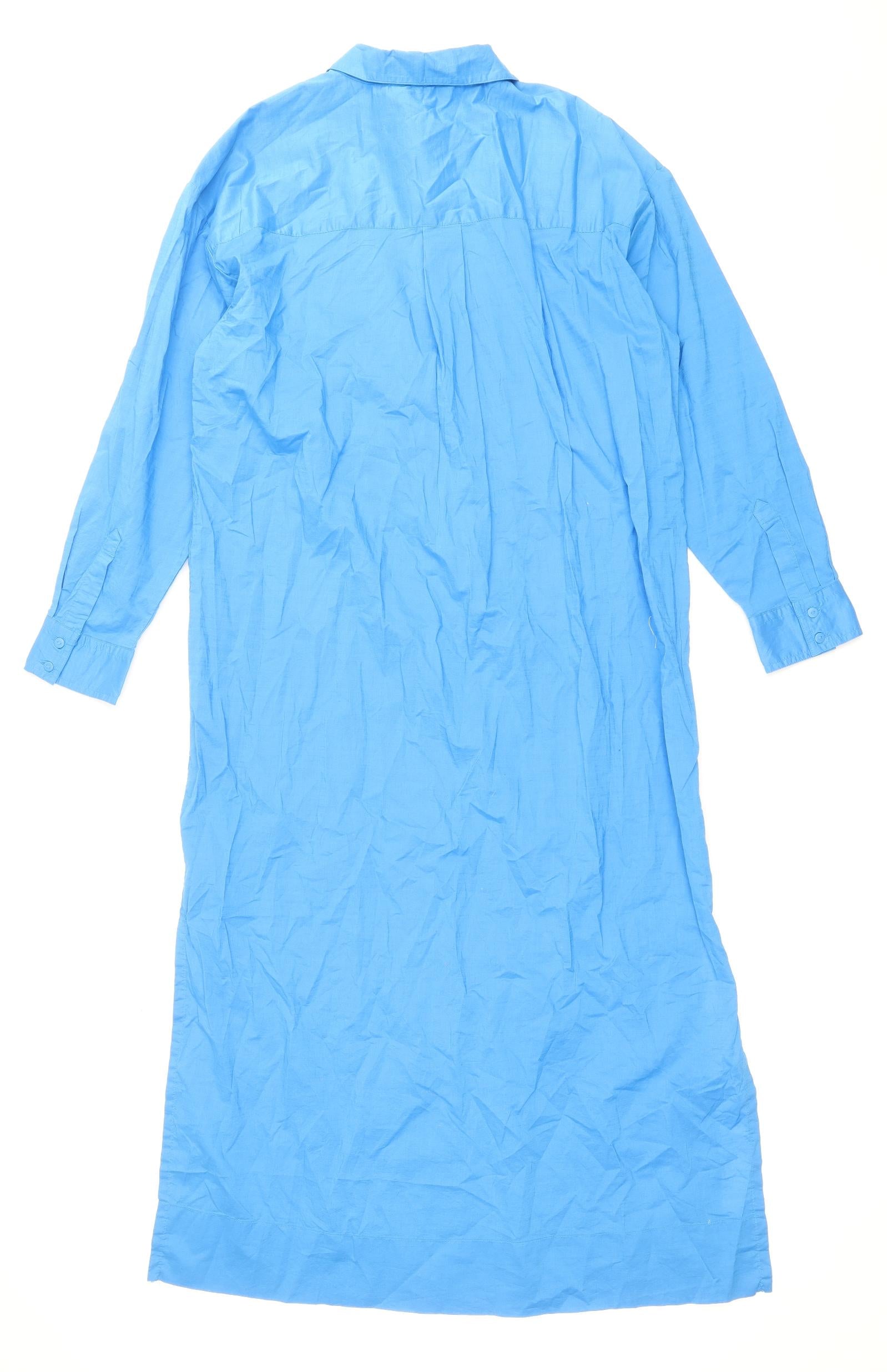 Womens Blue Cotton Shirt Dress Size 14 Collared Button