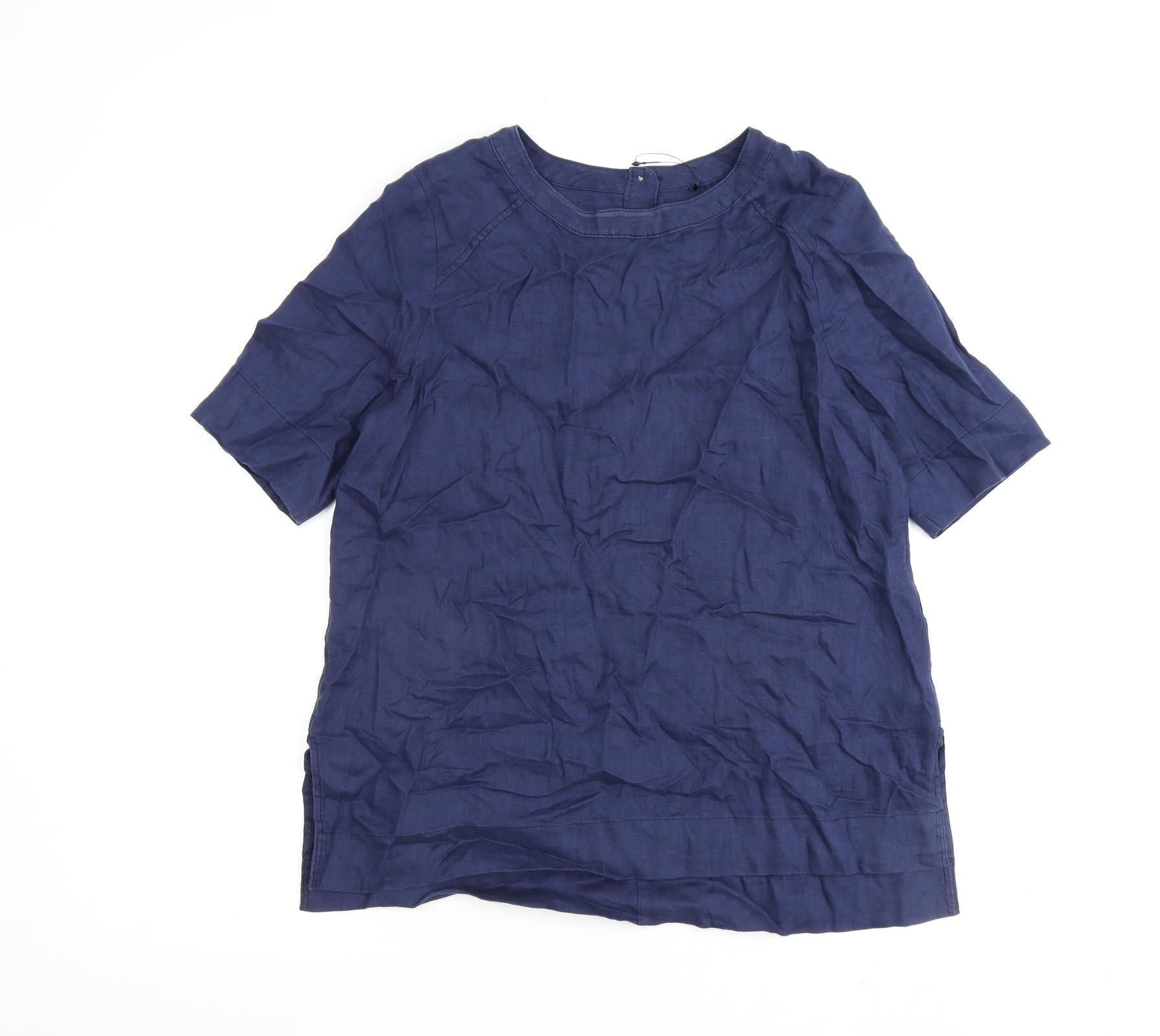 Womens Blue Flax Basic Blouse Size 10 Round Neck