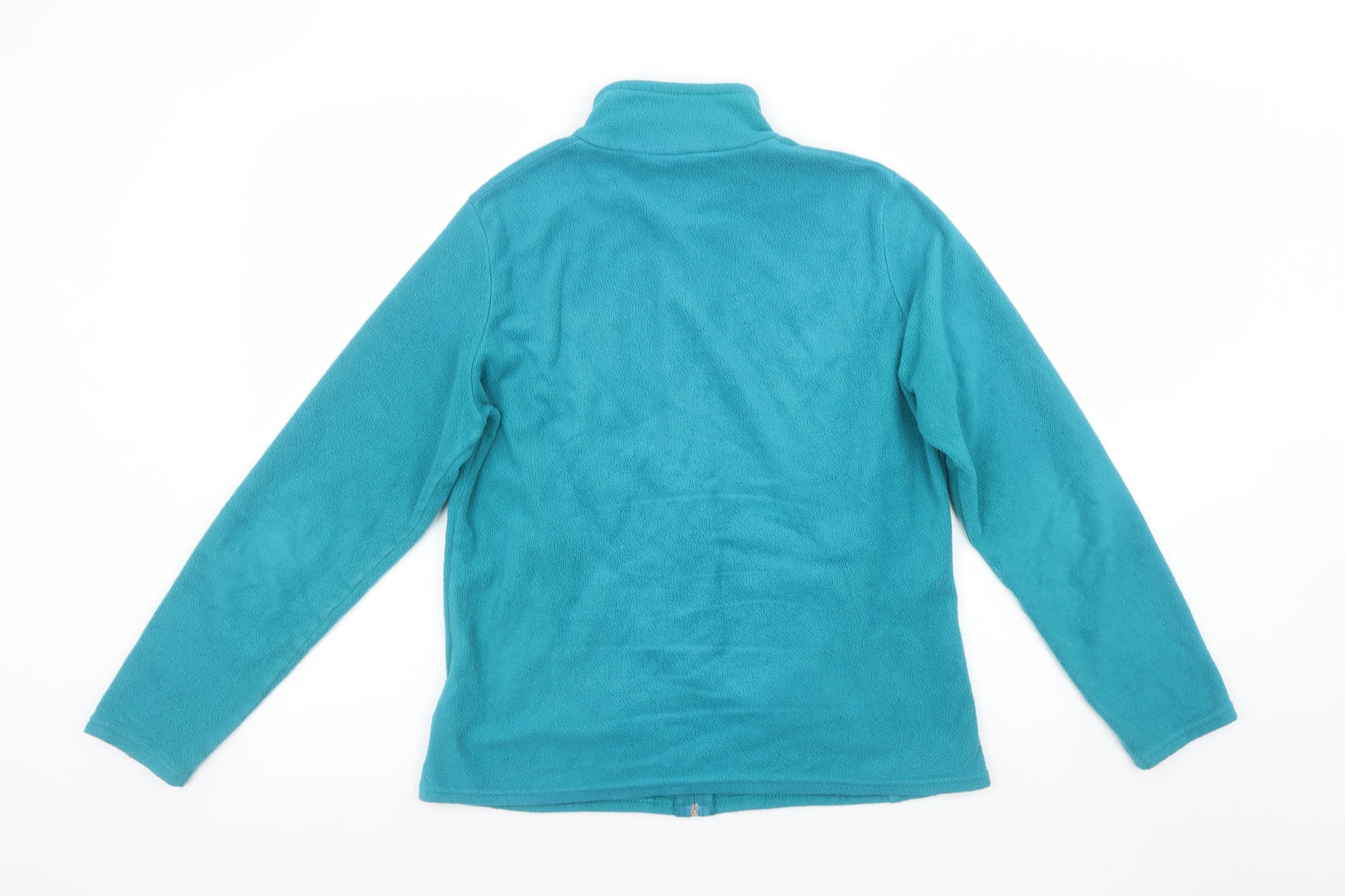 This cosy Marks and Spencer women’s fleece jacket in size 12 offers dependable warmth and versatility for everyday wear. Crafted from soft 100% polyester fleece, it provides excellent insulation without adding bulk, making it perfect for layering in the colder months or wearing as a lightweight outer layer during transitional weather. The teal-blue shade adds a stylish touch that flatters most skin tones while providing a fresh, modern look.Designed with practicality in mind, the jacket features a full front zip closure for easy wear and two discreet side pockets for convenience and comfort. The high neckline helps retain warmth, while the regular fit allows freedom of movement, perfect for casual outings, travel, or outdoor walks. The soft fleece fabric ensures breathability and comfort, making it an ideal piece for layering under a coat in winter or over a t-shirt during cooler spring days.Machine washable for easy care, this fleece jacket epitomises Marks and Spencer’s signature blend of comfort, quality, and everyday style. The simple yet timeless design means it pairs effortlessly with jeans, leggings, or outdoor wear, offering both functionality and understated elegance. With its excellent pre-owned condition—showing minimal signs of wear and no visible flaws—this jacket provides fantastic value and durability at an affordable price.A perfect addition to any casual wardrobe, this Marks and Spencer fleece jacket combines warmth, ease of care, and everyday style, ideal for women seeking a reliable and comfortable outer layer that transitions seamlessly across seasons.