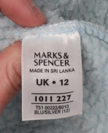Stay cosy and stylish with this Marks and Spencer Women's Jacket in a serene shade of blue. Designed for optimal warmth, this jacket is crafted from soft fleece fabric, perfect for the chilly winter months. The regular fit ensures comfort and versatility, making it an ideal choice for casual outings or just relaxing at home. Featuring a full zip closure, it offers easy layering and added protection against the cold. The jacket is machine washable, promising hassle-free care. With its simplistic, no-pattern design, it pairs effortlessly with a variety of outfits, embodying both practicality and elegance. Don't miss the opportunity to add this excellent condition piece to your wardrobe and enjoy timeless comfort with a touch of sophistication.